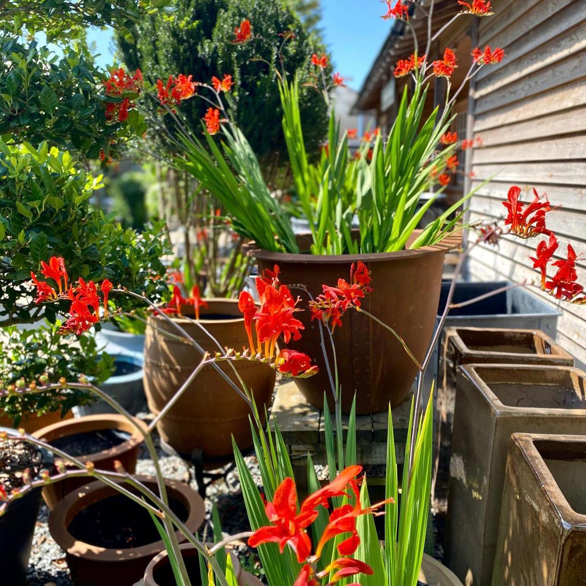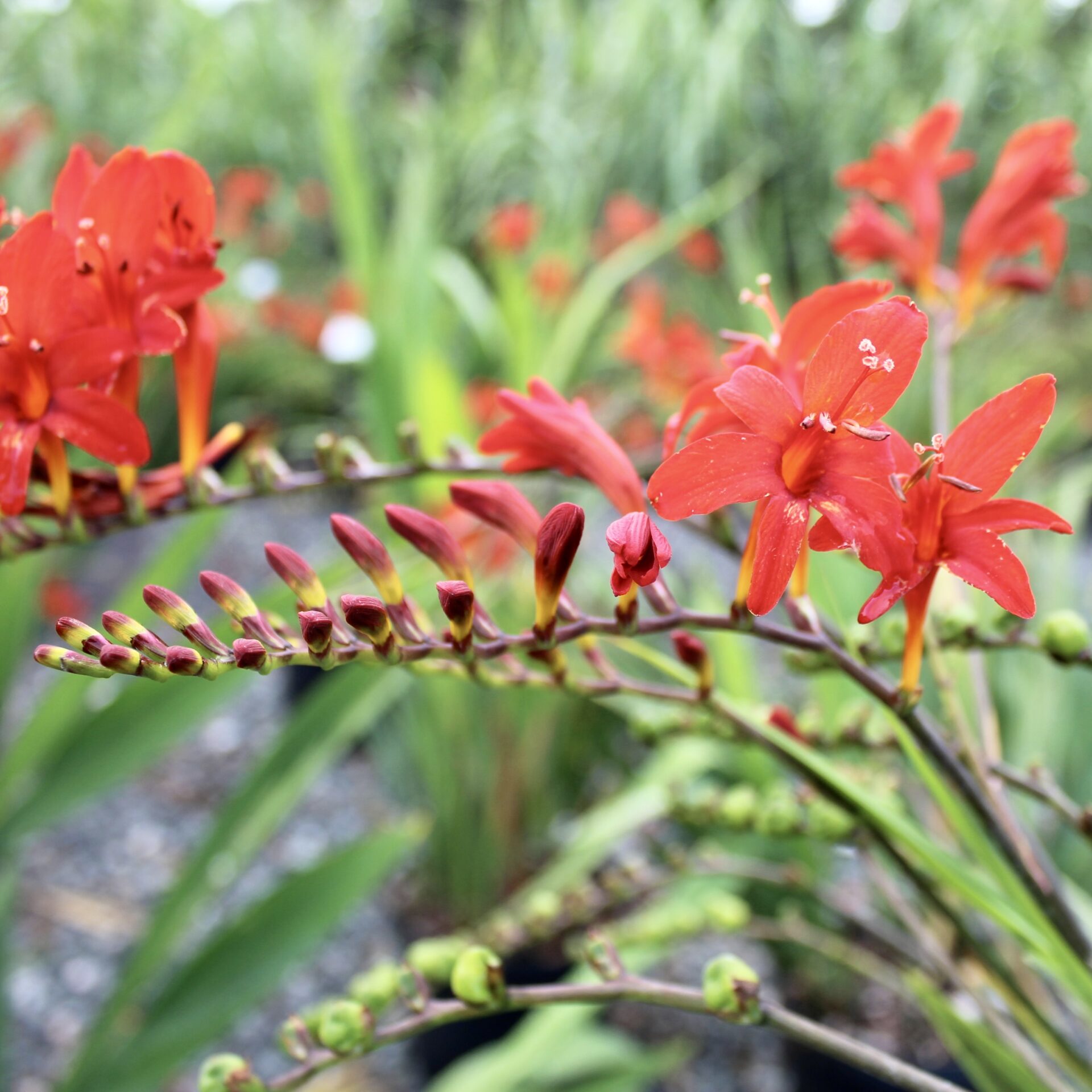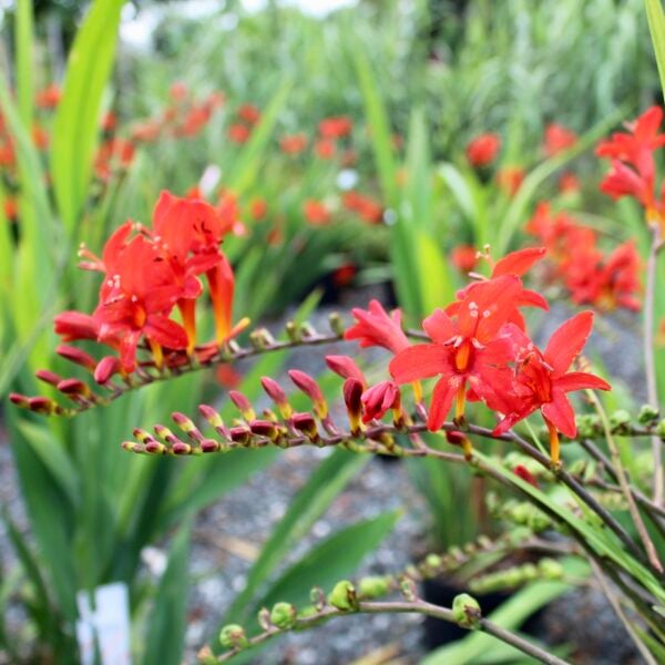 To 3 ft with strong reddy orange flower spikes in late summer. For sun or shade, dies down in winter. Lovely woodland plant. Please contact us for other stock availability and sizes.