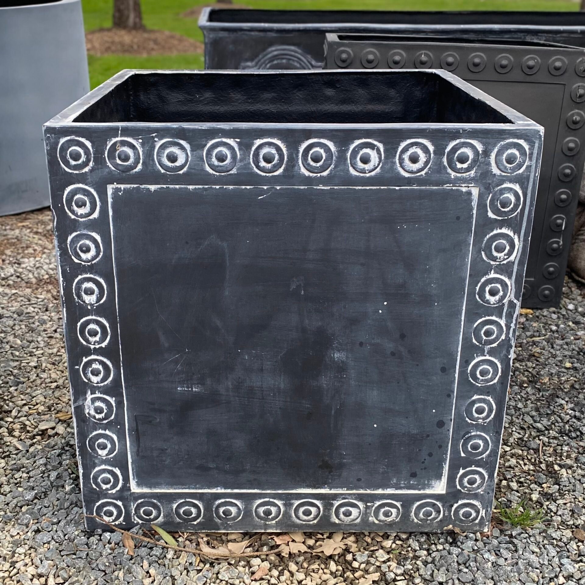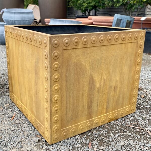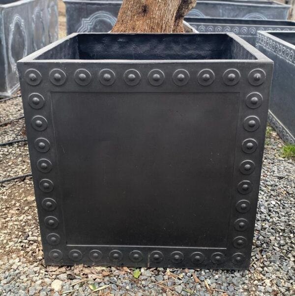 The Cromwell Tank is a bold planter with a contemporary edge. The rivet design decorating the edges looks particularly good in the antique faux lead finish. This tank can be used for planting up large trees or to collect water beside a greenhouse or conservatory.