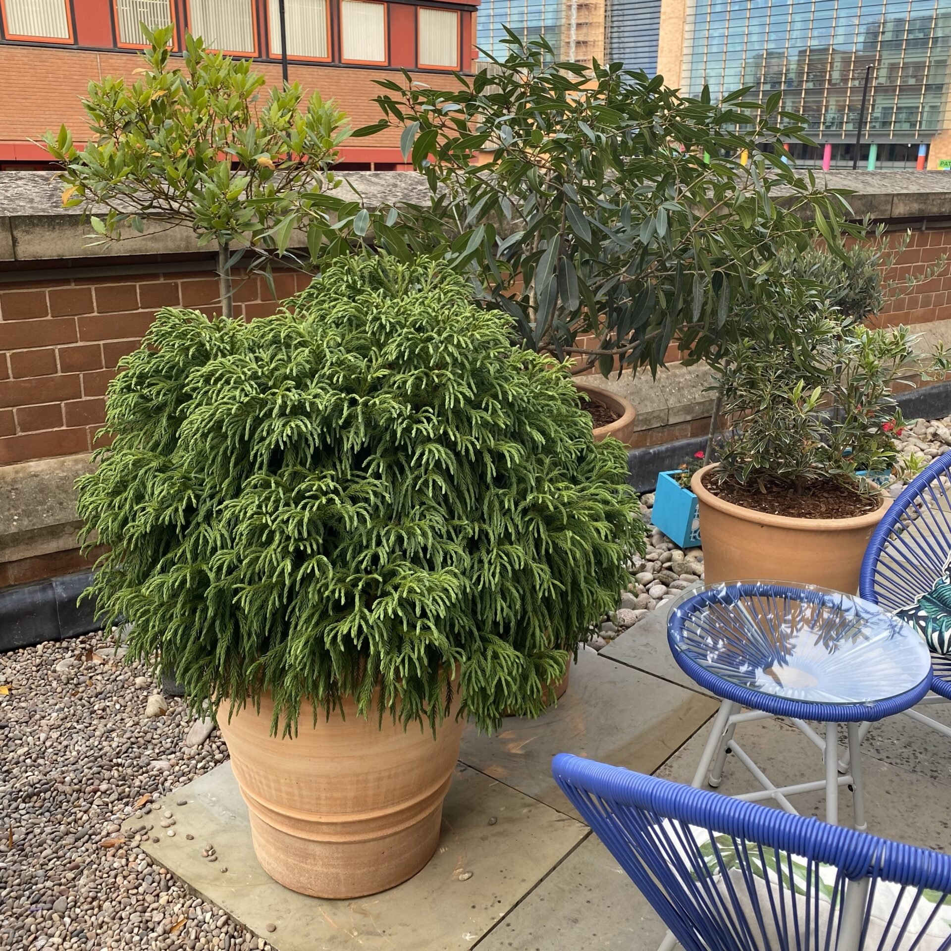 We’re keen on poodling our plants here at AP, but this one poodles itself. “Globosa’ by nature, these charming trees form tight bulbous bundles of soft branches each tightly packed with emerald green leaves. Structure of the softest, bobbliest kind and essential in any serious collection of smart evergreens. You can trim it a bit if you feel it’s necessary, and it wont mind much. Bit tricksy: it definitely will mind longish periods of little or too much water. Boggy soils will not be tolerated (dead) and we find our nursery specimens on their neat automatic watering system never display any signs of stress or sadness. This says much about their need for consistency. Definitely worth the effort though, given how much charm and character these bobbles bring. Bon chance! (buona fortuna)