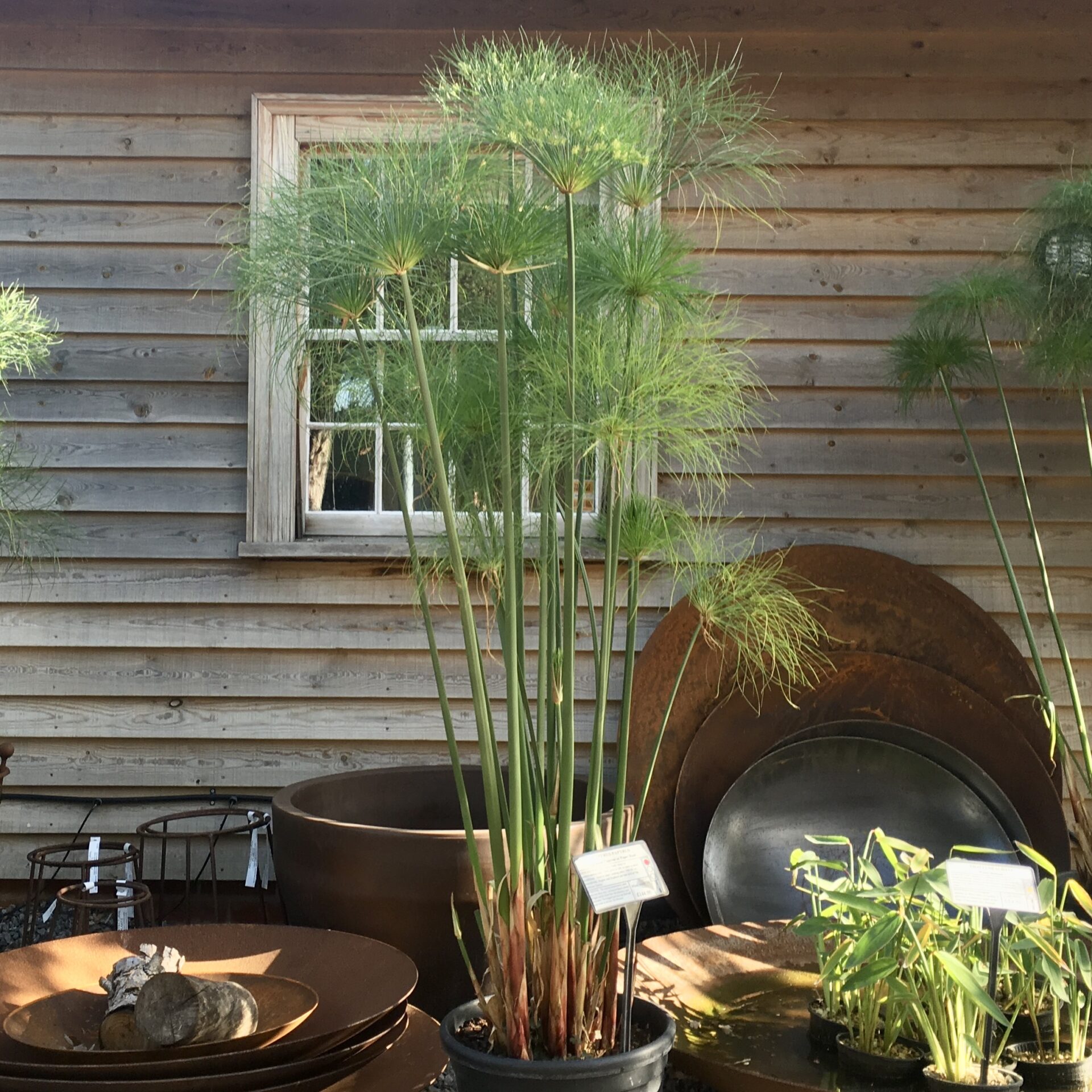 As long as there's plenty of light (lack of light can cause them to flop) you can't go wrong with this. Remember Moses in the Bull Rushes? A wonderfully British Imperialist interpretation. The poor wee chap wasn't found in the Bull Rushes because Bull Rushes don't grow on the banks of the Nile but this stuff does. Moses in the Cyperus papyrus, more like. Not only is it a place to find potential prophets floating about, it's also one of the most widespread plants for paper production. It's what the ancient Egyptians learned to write on.