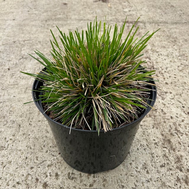 An airy, fluffy evergreen grass. Silvery gold flower spikes that start in July and last well into autumn. It can grow to 2ft by 2ft.