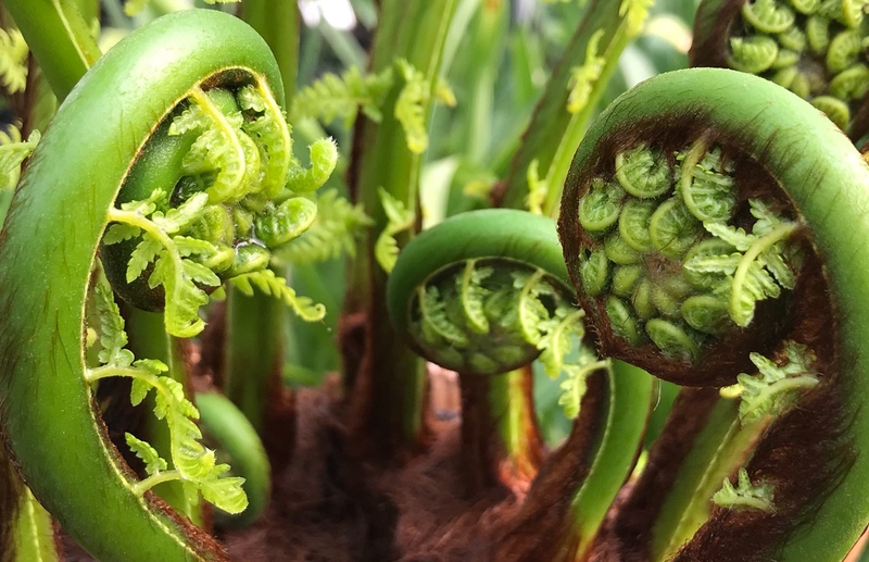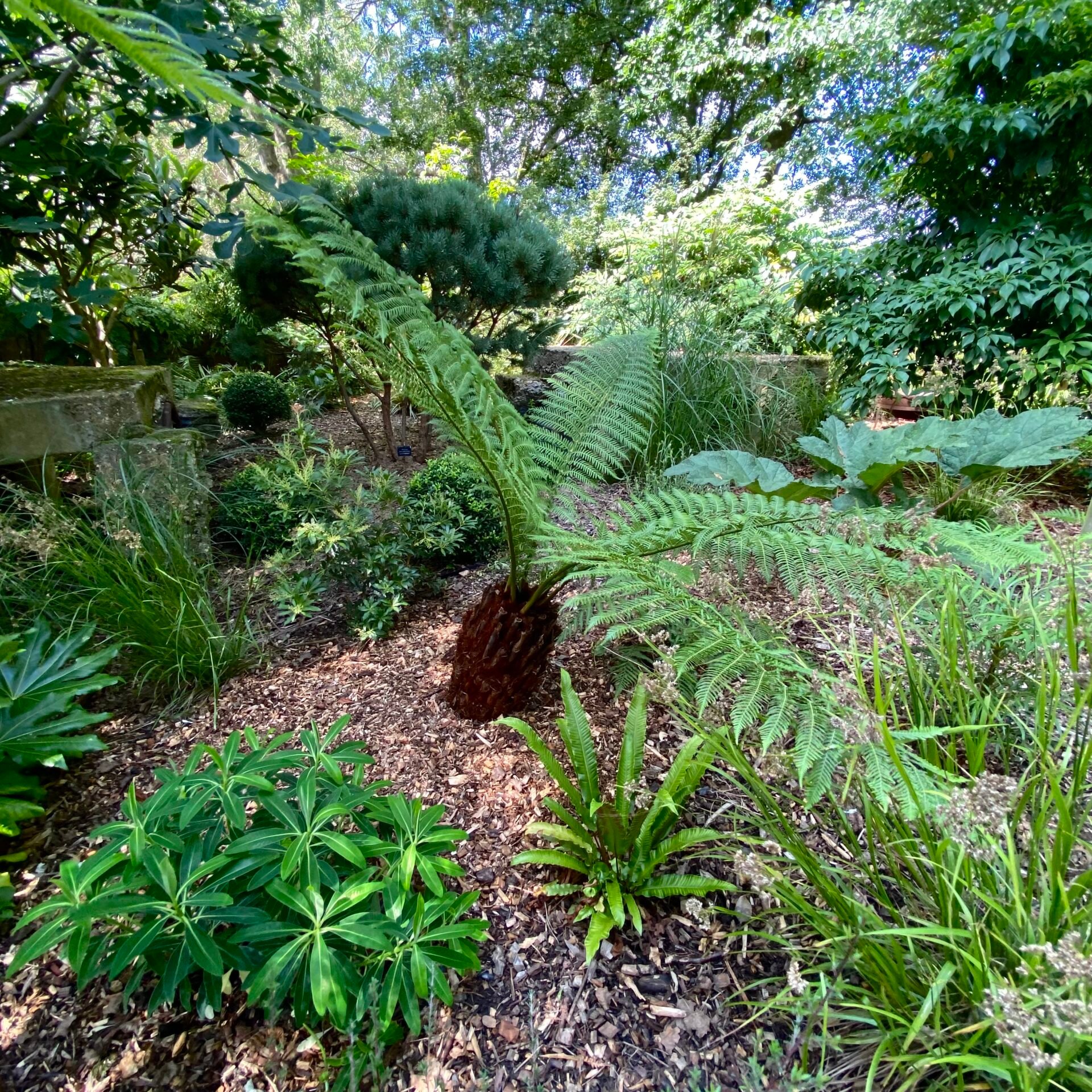 They like a bit of shade (but not too shady - they get thin and drawn), nice organic soil (which all ferns like) and humidity. People are often surprised that tree ferns grow happily in Los Angeles where it hardly ever rains. The answer is the Pacific ocean. It might not rain much but the ocean makes coastal areas humid enough to keep tree ferns happy. They also like space to show off their symmetrical loveliness. The view from above is unsurpassable. The face that plants show to the sun is often their finest face. In the case of tree ferns, this is undoubtedly true. January 3rd 1985 is when it all started. I visited the Temperate House at Kew Gardens - at a time when I was beginning to develop an obsession with plants - and found a clump of these plants. I never knew such things existed. I ascended the spiral stairs and gazed down in awe upon this heavenly collection of symmetrical rosettes. I think I've been in a trance ever since. The label told me all about them and that there were gardens in south west Scotland where they grew outside. Maybe that was the day that Architectural Plants was born.