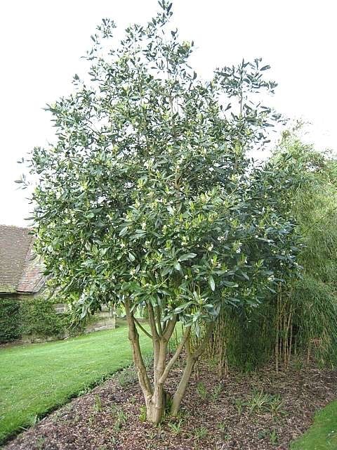 A reliable little evergreen tree from South America with masses of white flowers and an upright, multi-stemmed, narrow habit. Fairly quick growing – 20ft after 15 years. Please contact us for stock availability and sizes.