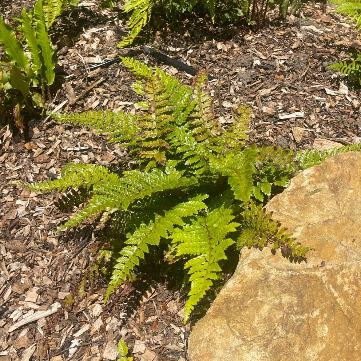 Semi-evergreen (rather depends on how harsh the winter is) fern from Japan. Bronze coloured new growth. Semi-shade to shade, well drained ferny soil (see below). If ferns already enjoy your garden, you'll have no trouble with this one. In ideal conditions (well drained organic soil but plenty of moisture available) - this could grow to 3ft x 3ft after 4 or 5 years.