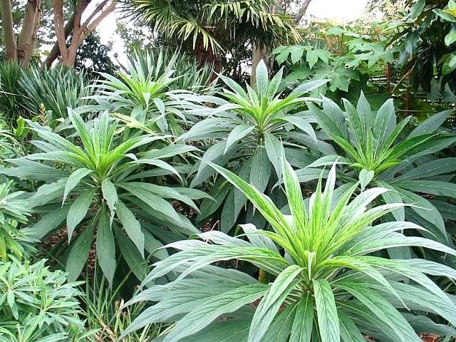 Amongst exoticists, this reigns supreme. The shape, the size, the flowers – all are exotic to the tips of their inflorescences. 8ft in 2 yrs. Flowers can reach 15ft. Please contact us for stock availability and sizes.