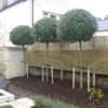 For formal evergreen clipped trees these are perfect. They may not be as posh as Holm Oak and they'll need clipping more often than Holm Oak but they'll do the job quicker and cheaper than anything else. When using for a stilted hedge (a hedge on legs) we plant about 1.6 metres apart - never more if you can help it. If you clip 4 times a year (remember that when it comes to topiary, the more often you clip, the sooner you'll get what you want) you should have them all joined up and looking nice and dense and finished in less than 4 years from planting. Mice love the berries.