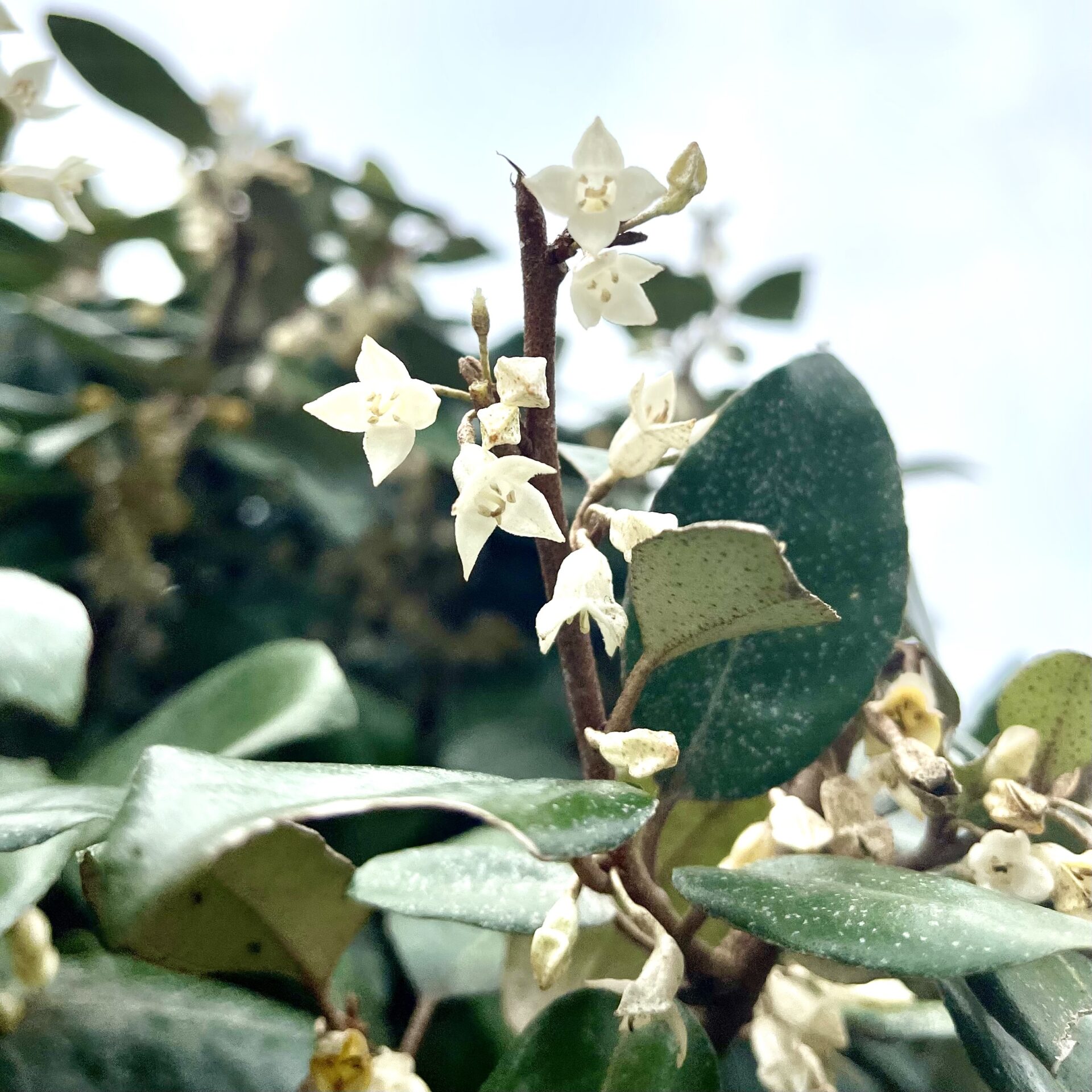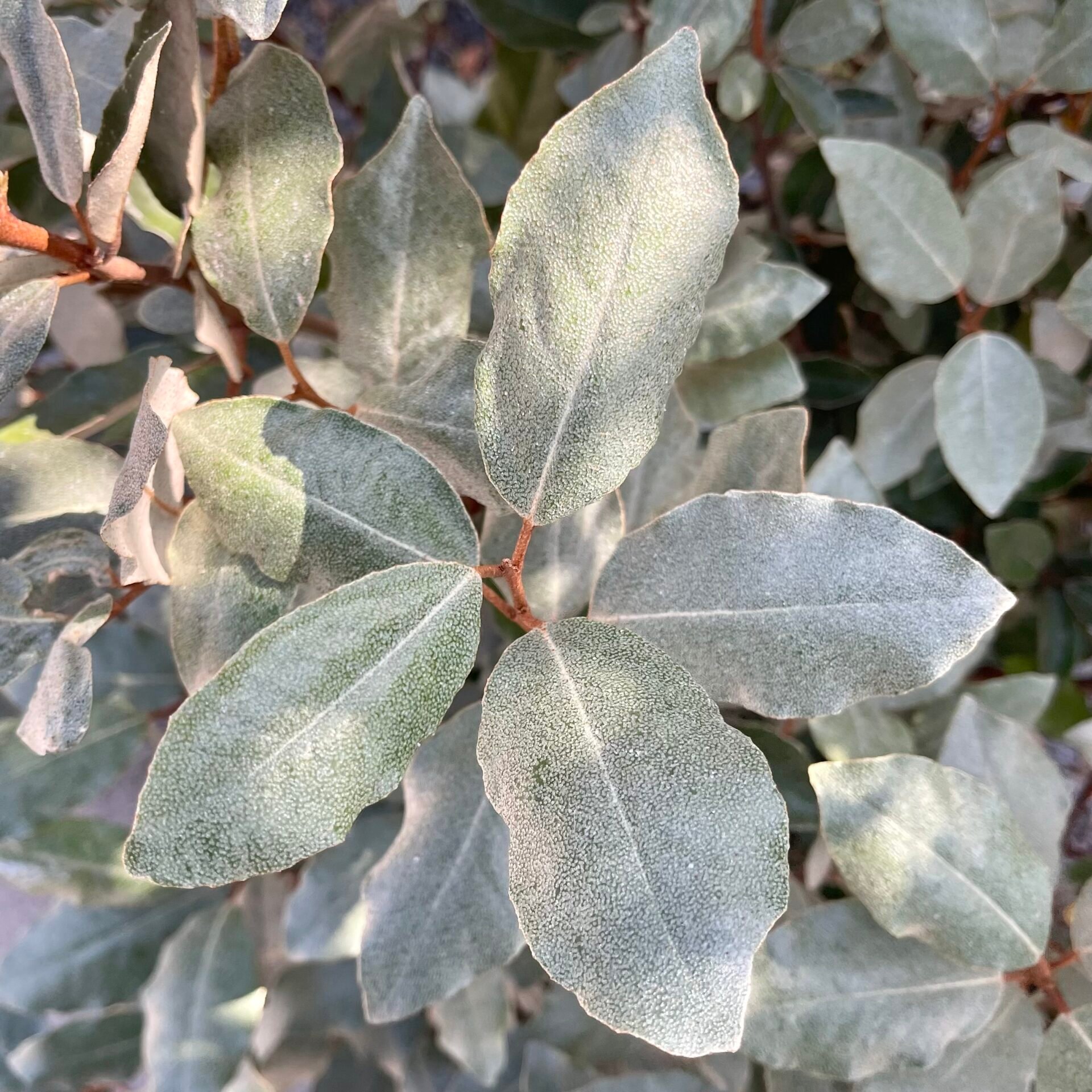 Frost, salt and wind hardy evergreen with silver leaves and fragrant little white flowers in autumn. Please contact us for stock availability and sizes.