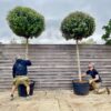 Elaeagnus x ebbingei balls. These are grand choice for grand topiary, making strong, solid balls of dark foliage for pretty much any position within the garden. They are evergreen and in the late summer or early autumn, the flowers, (incredibly sweetly scented, tiny, bell shaped, and cream coloured), develop on the older wood, but because they are within the structure of the ball, it means that they don’t get cut off even though the plant is clipped regularly. Magic!