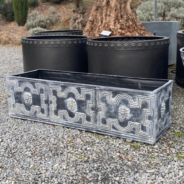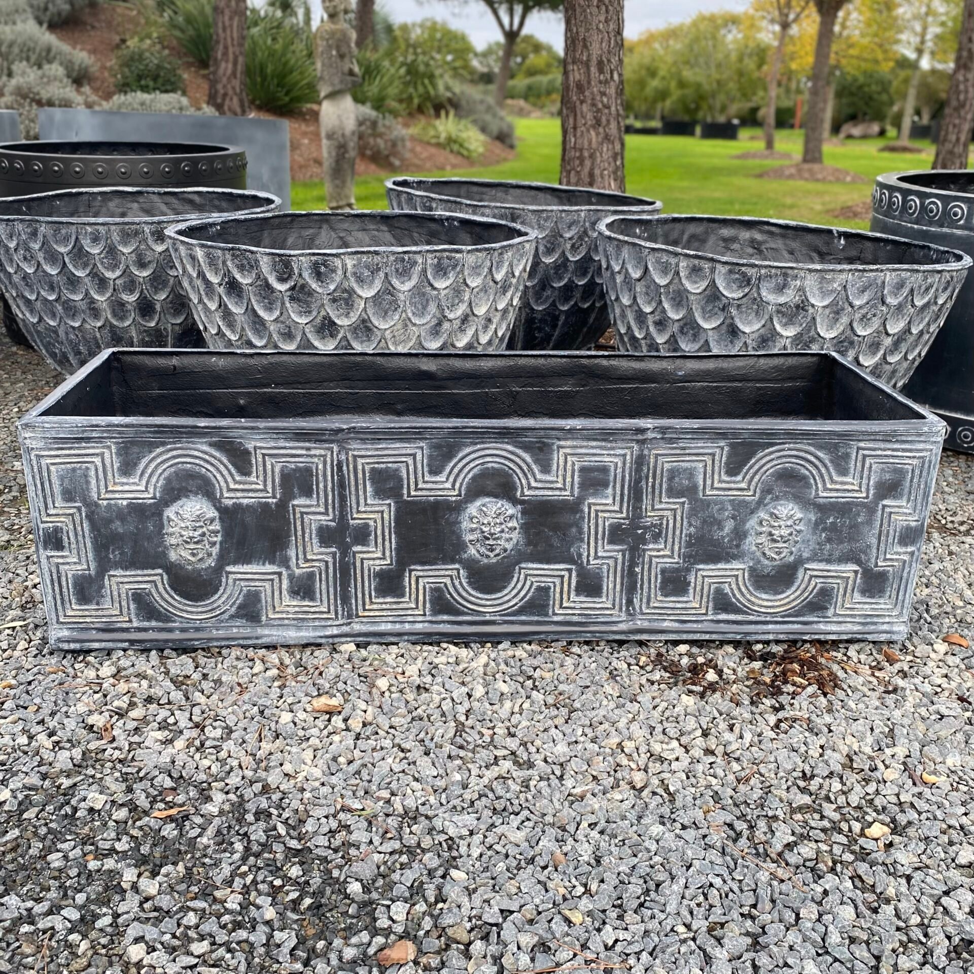 Traditional Elizabethan range of plant pots typically illustrate the Elizabethan period, with lions' heads adorning the sides of the plant pots. The original planter stands outside one of Scotland's large stately homes dating back to circa 1550. These faux lead fibreglass planters work well in formal gardens and are ideal on a roof terrace where weight is an issue.