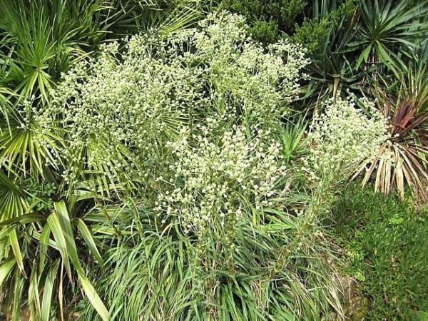 Panicles of pale jade-like green flowers are produced in summer and once your clump has established you’ll get a lot of these. The mass of bobble-like blooms hovering over the plant is unusual and arresting: each flower head looks like a teeny weeny carving of a pineapple with a spikey court-jester collar.