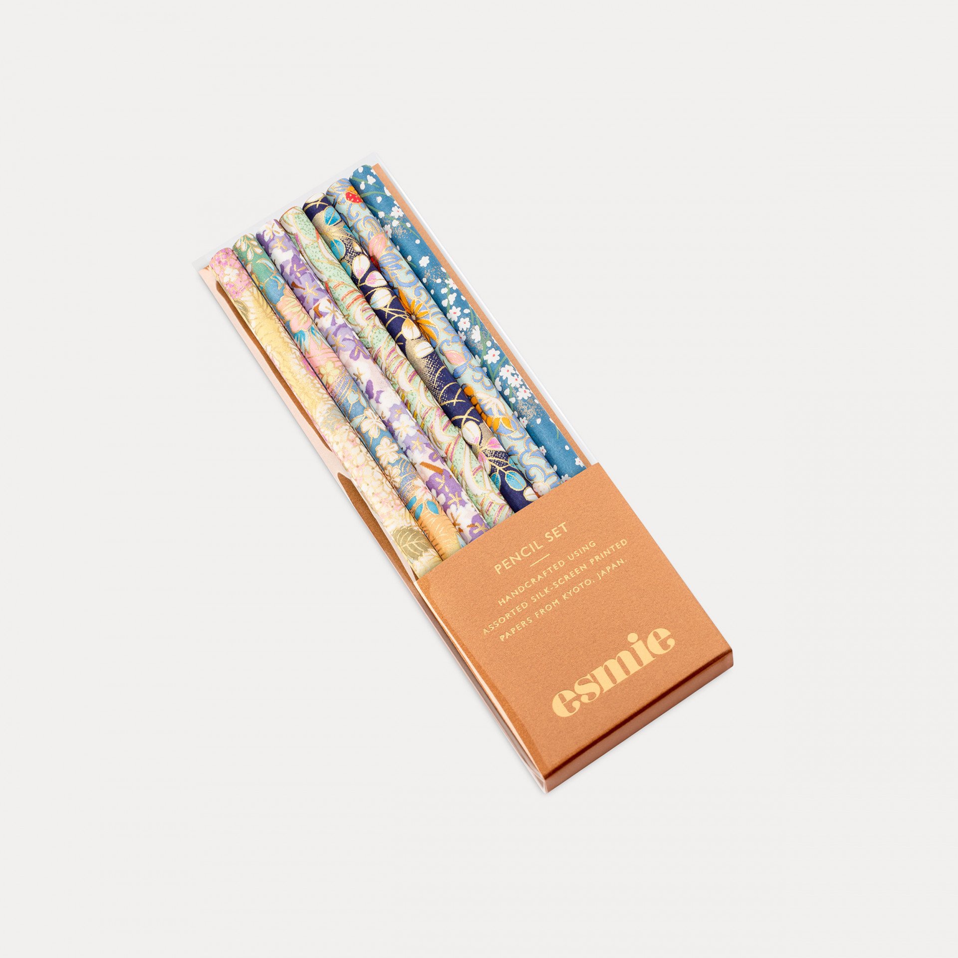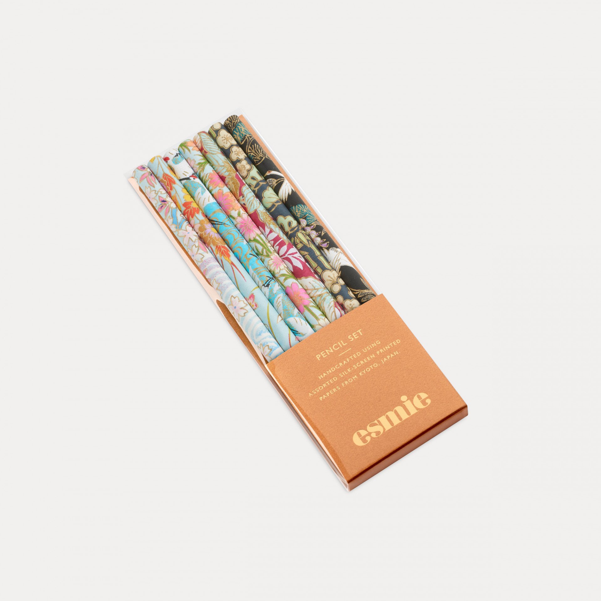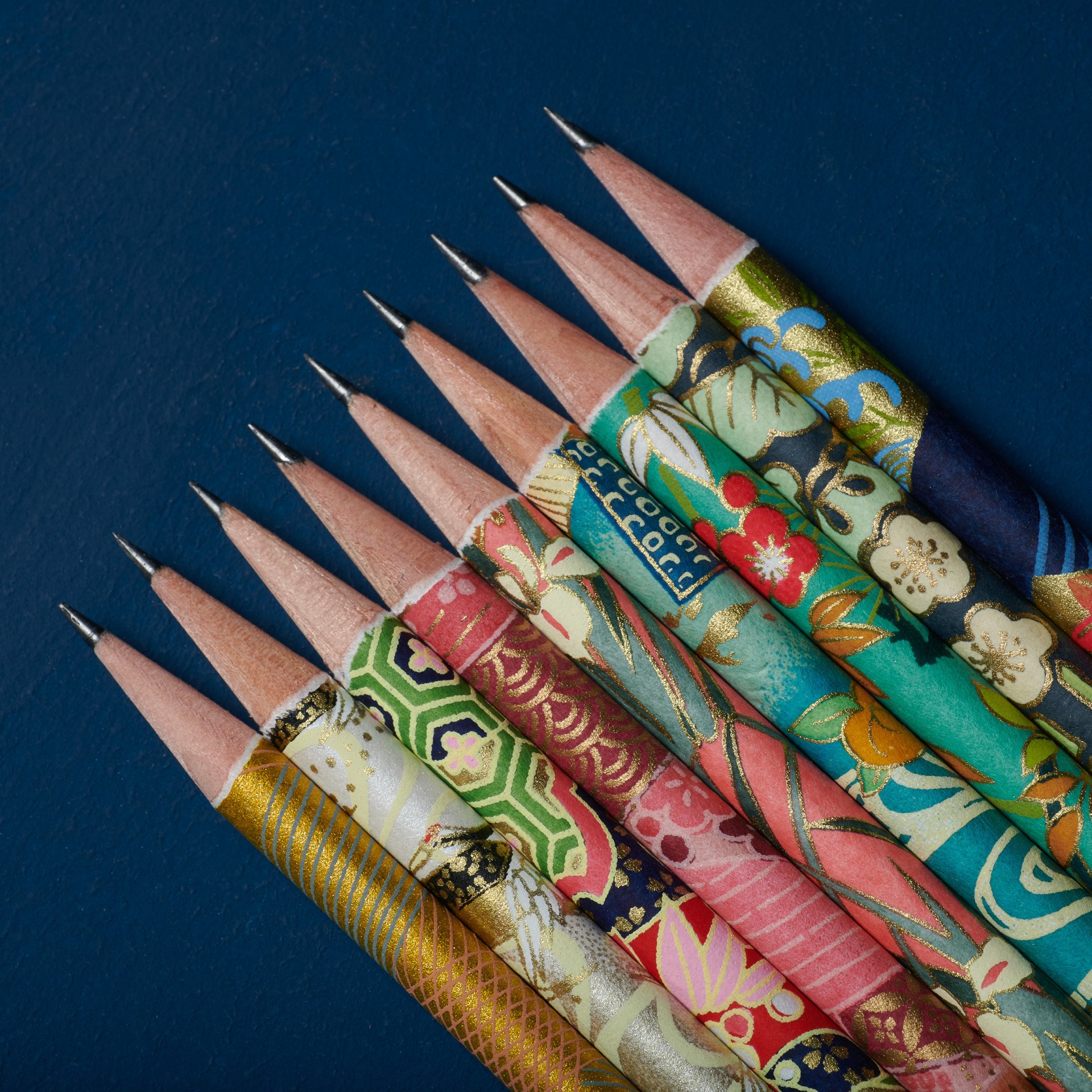 An assorted luxury set of pencils. All covered by hand with a Japanese silk-screen printed paper by family run studios in Kyoto. These HB grade pencils, are perfect for jotting down your ideas, to do lists or on the go doodles for when inspiration strikes.