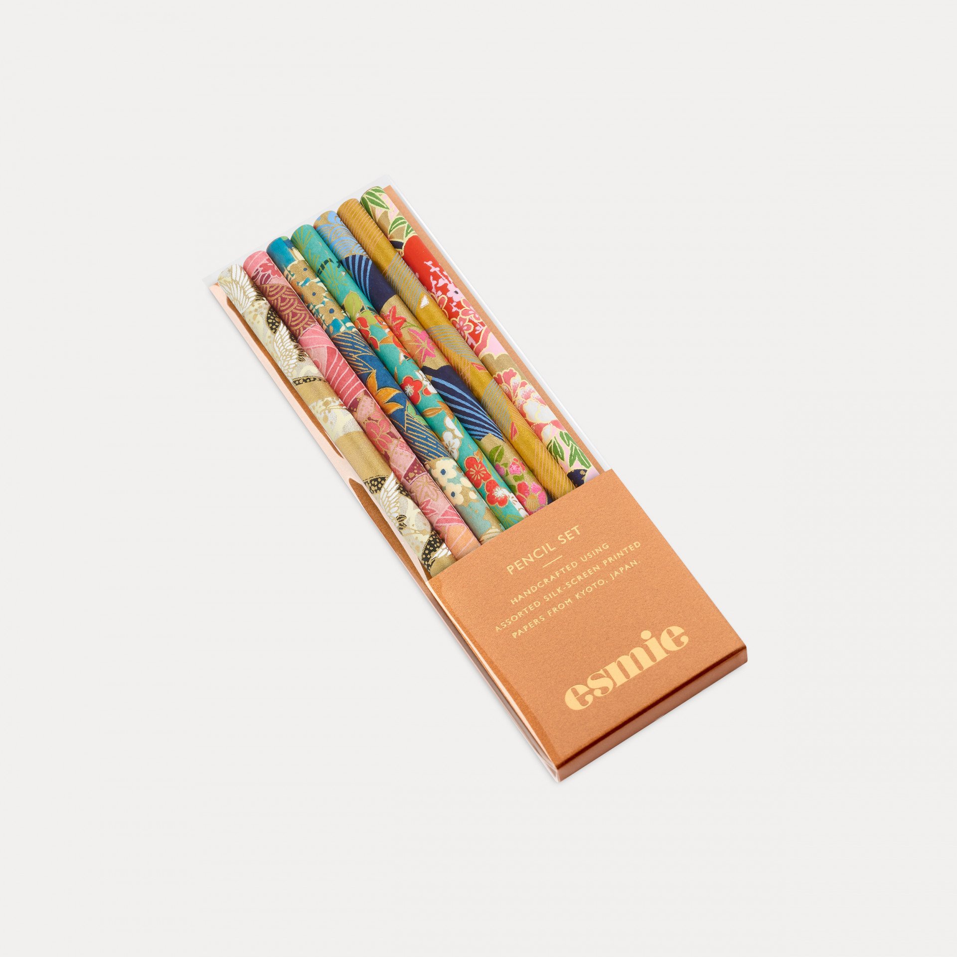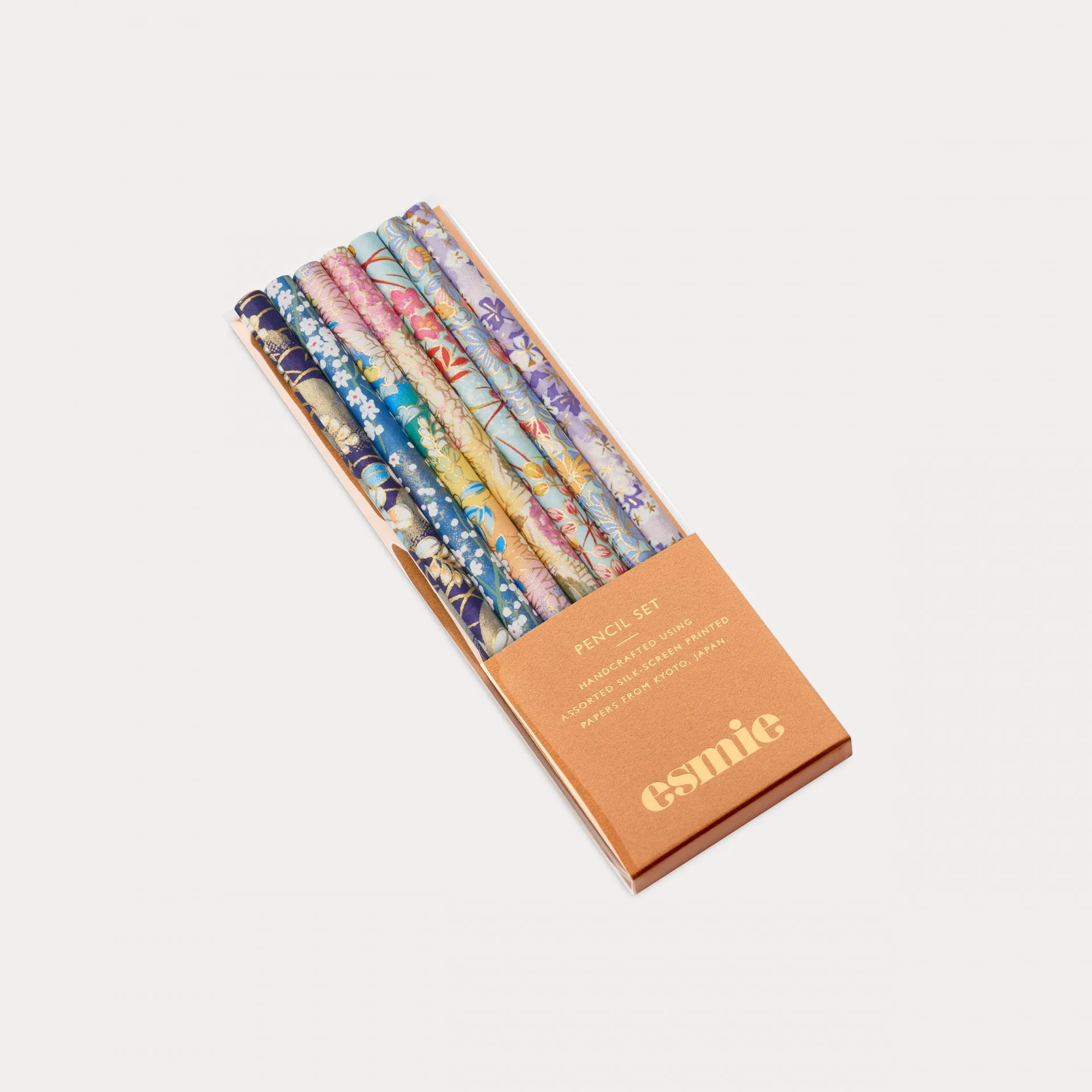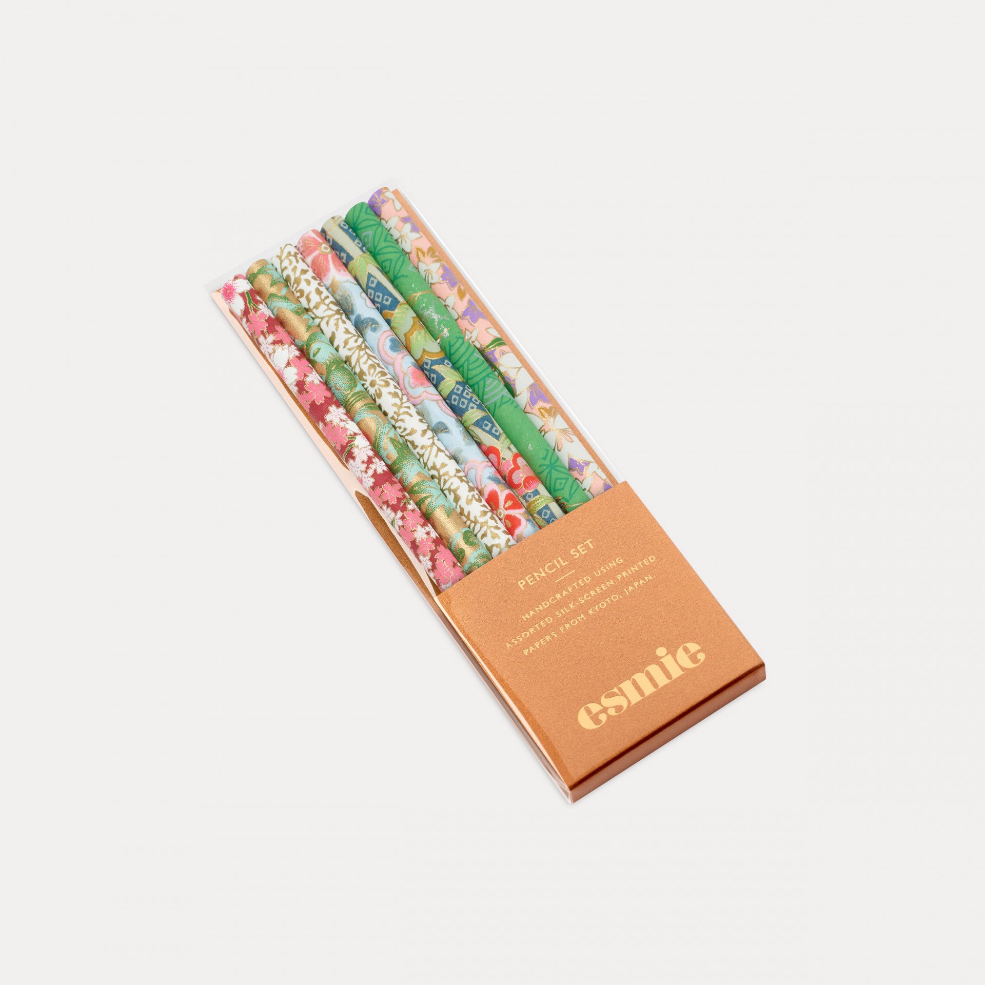 An assorted luxury set of pencils. All covered by hand with a Japanese silk-screen printed paper by family run studios in Kyoto. These HB grade pencils, are perfect for jotting down your ideas, to do lists or on the go doodles for when inspiration strikes.