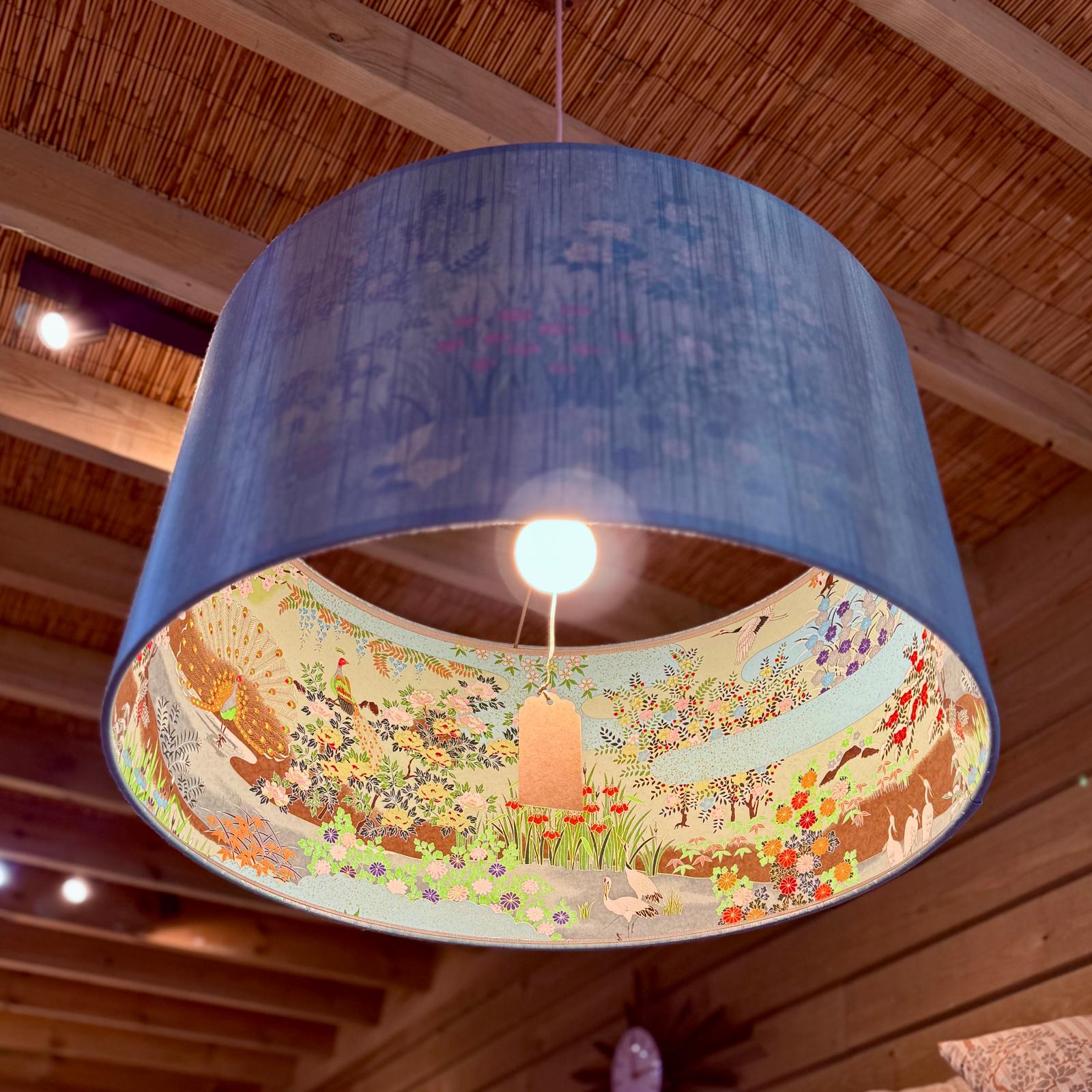 These luxurious fabrics from Japan have a dual-tone and/or grosgrain finish, providing texture & depth of colour, whilst the stunning silk-screen printed interiors are richly decorated with beautiful florals and traditional Japanese foliage. Pair with one of our lamp bases, or create a focal point by hanging from your ceiling.