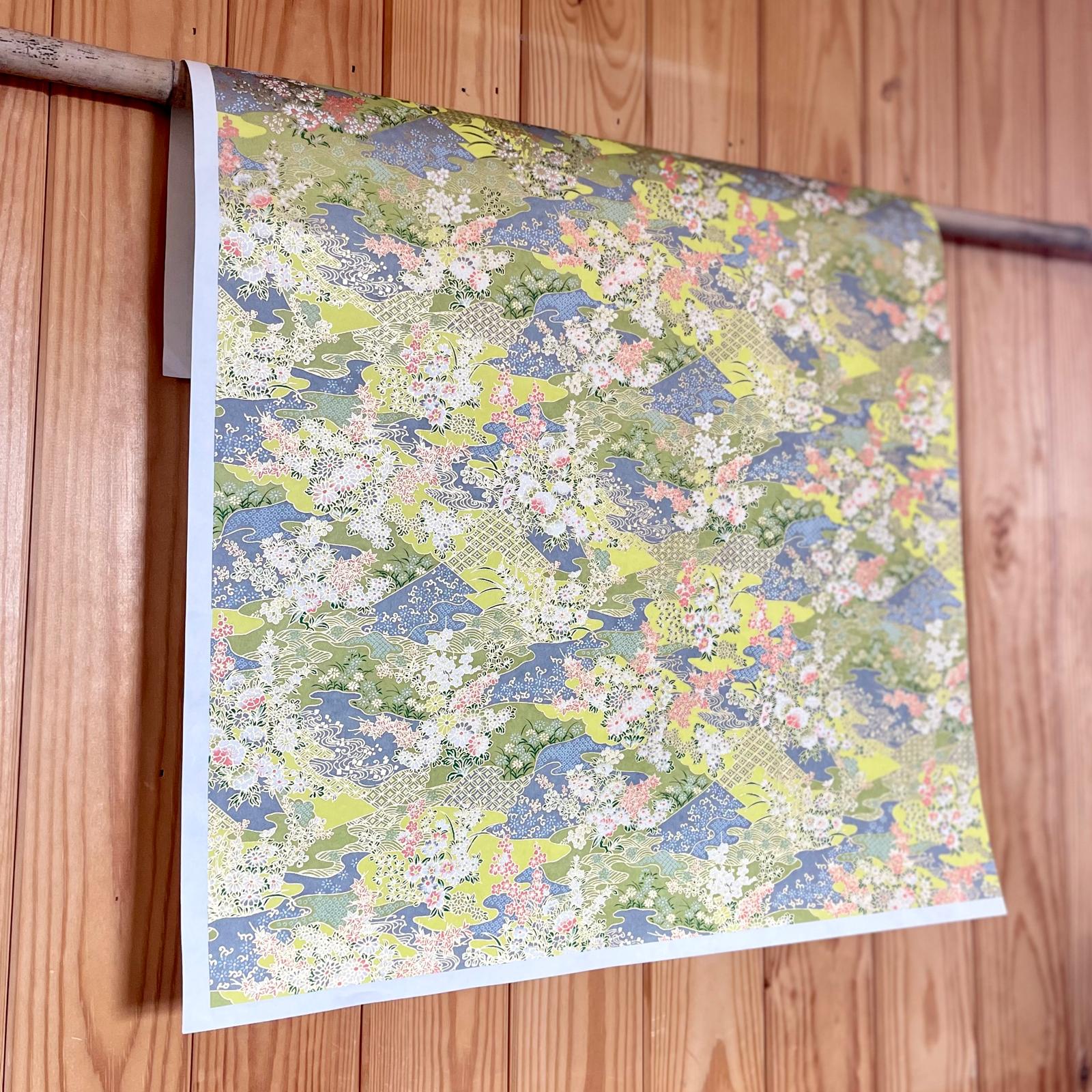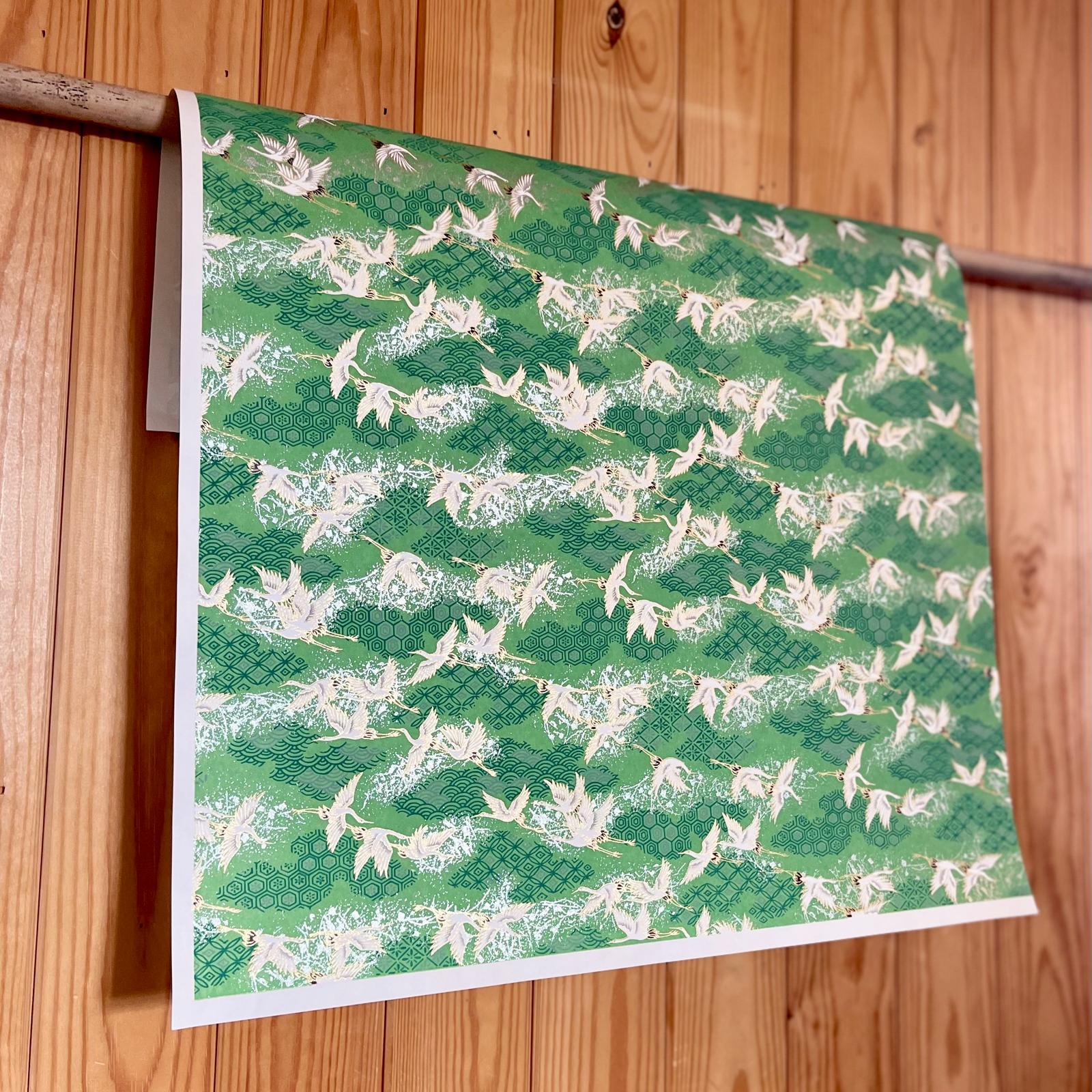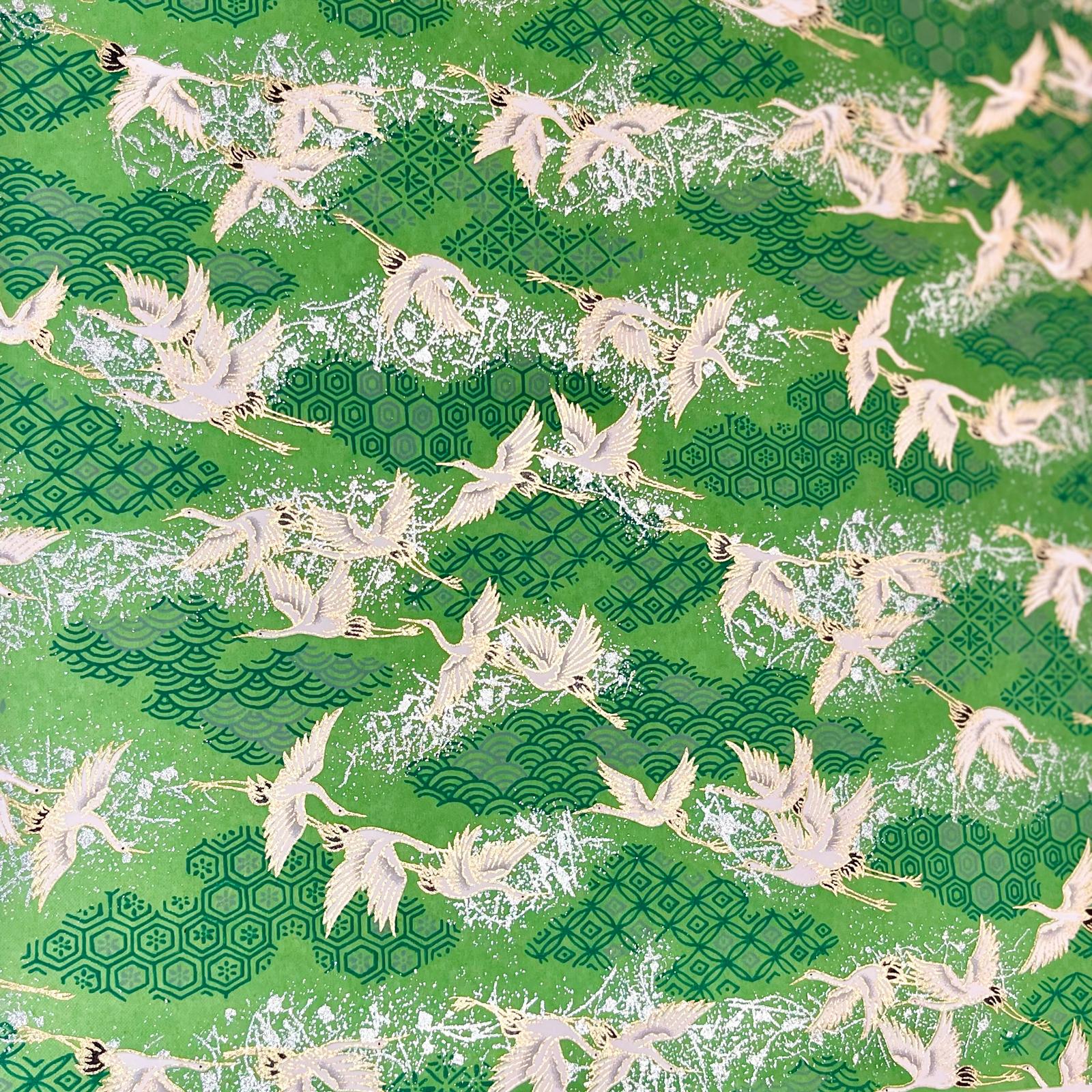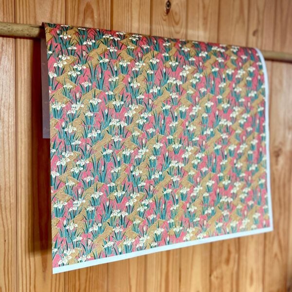 Explore Esmie's collection of silk-screen printed papers carefully selected from an extensive archive of designs in Kyoto, Japan, where we work with family-run studios to produce these exquisite designs in our colour specifications. Many of the designs (also known as Yuzen or Chiyogami) are inspired by textiles dating back to the Edo period (1603-1868), and incorporate symbols of Japanese culture and sensibility, including cranes for long life, blossom for beauty & longevity, bamboo for flexibility. Each colour is applied individually by hand, of which there can be up to 7, all registered with incredible precision, creating an extraordinary depth of colour & pattern, finished with metallic ink creating a beautiful gold lustre. The 88 g/m² base paper is a mixture of kozo and sulphite, despite being light weight, these papers are extremely durable making them suitable for many applications including, bookbinding, origami, box-making, as well as interior projects such as wall covering and furniture lining.