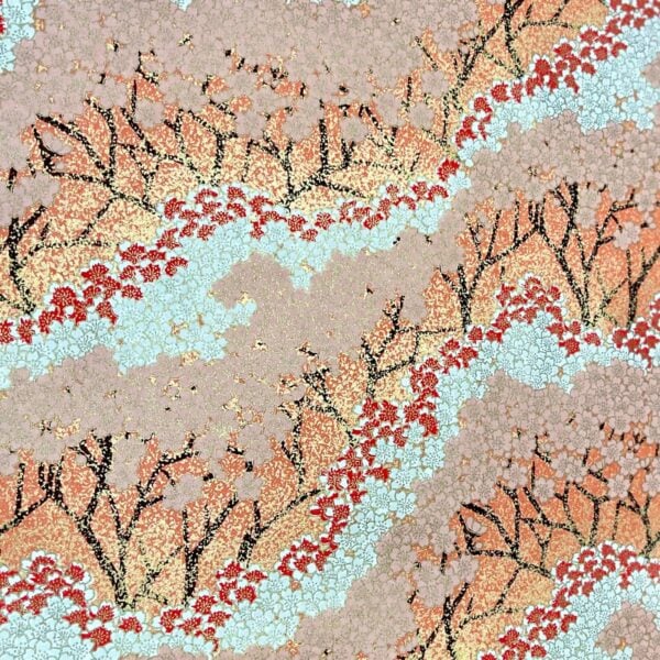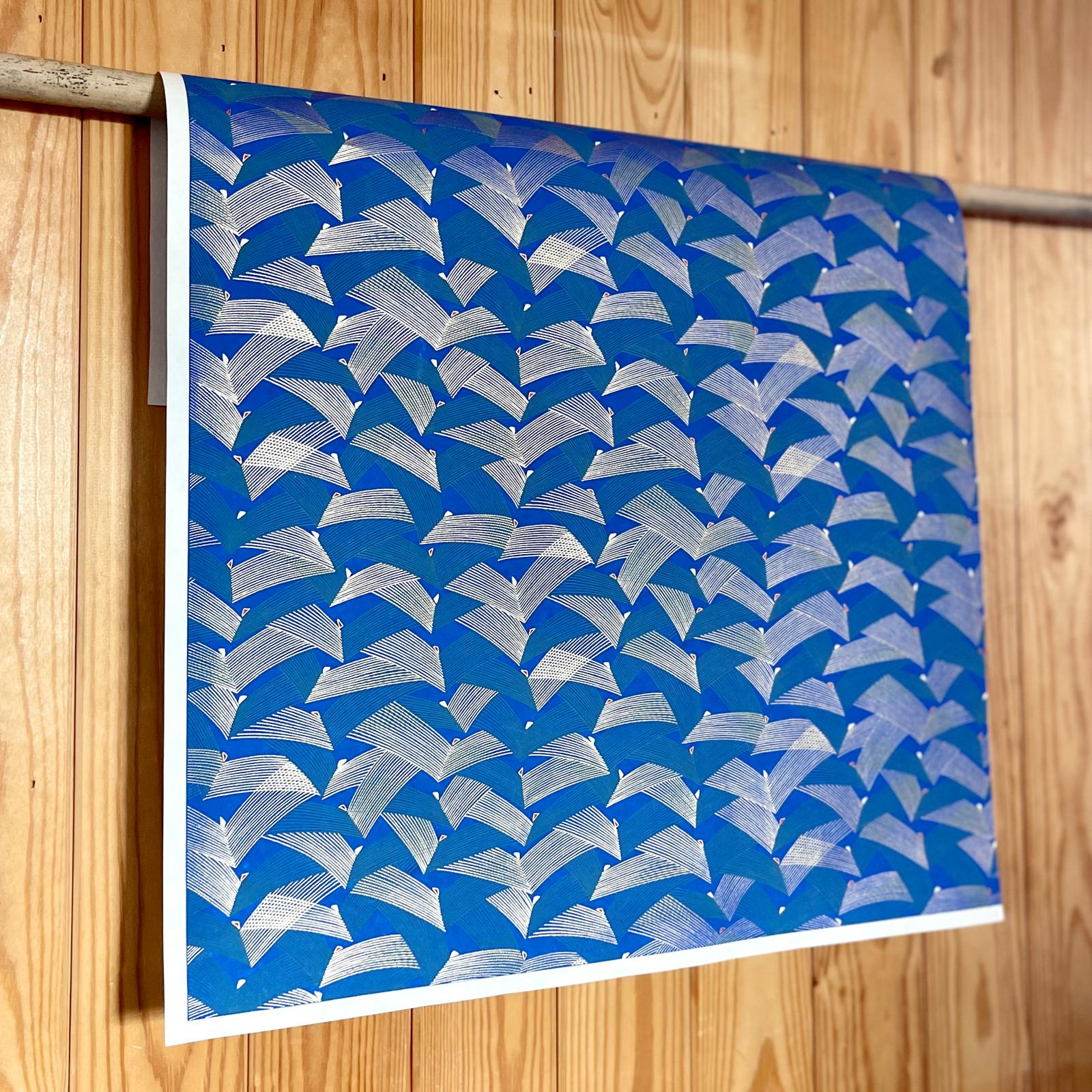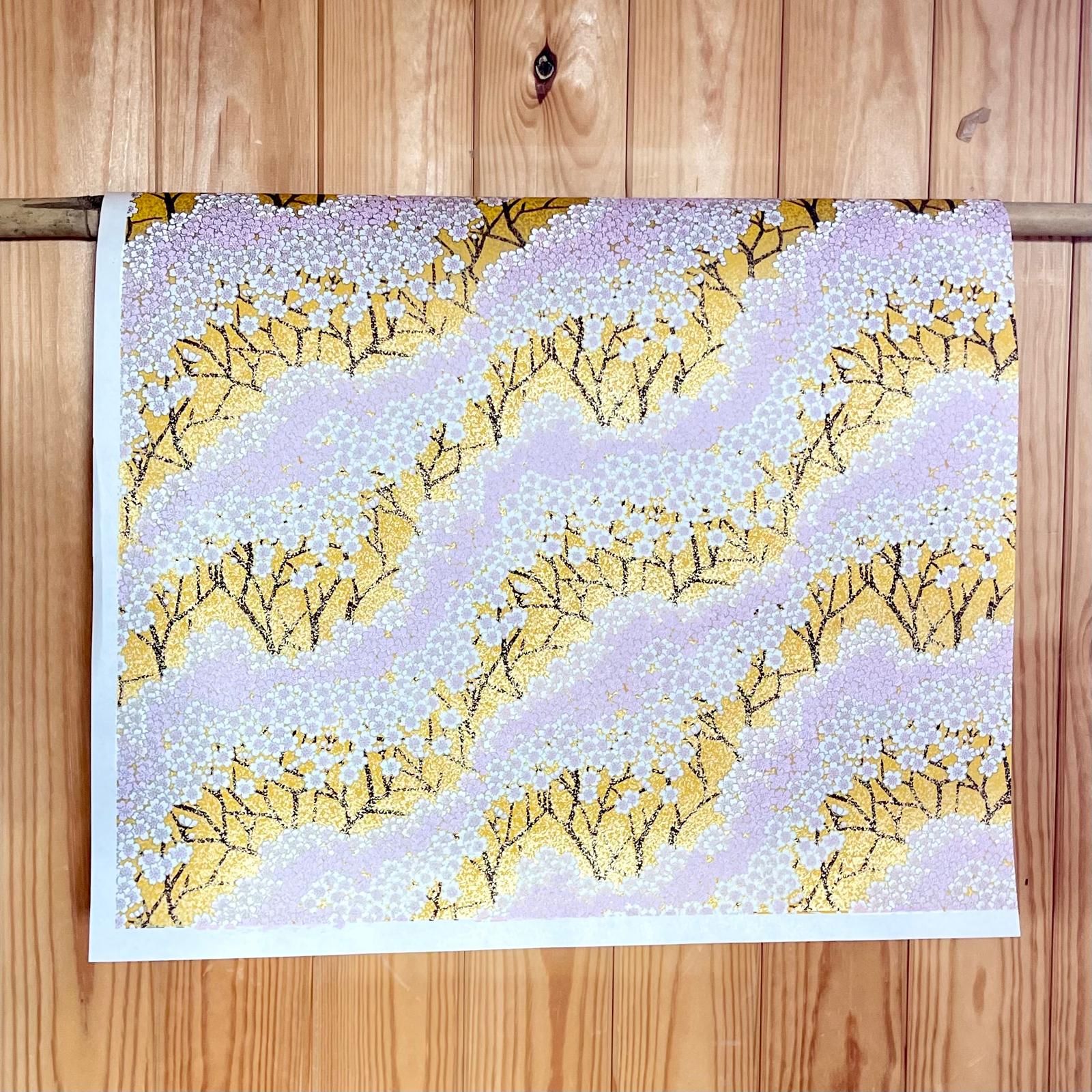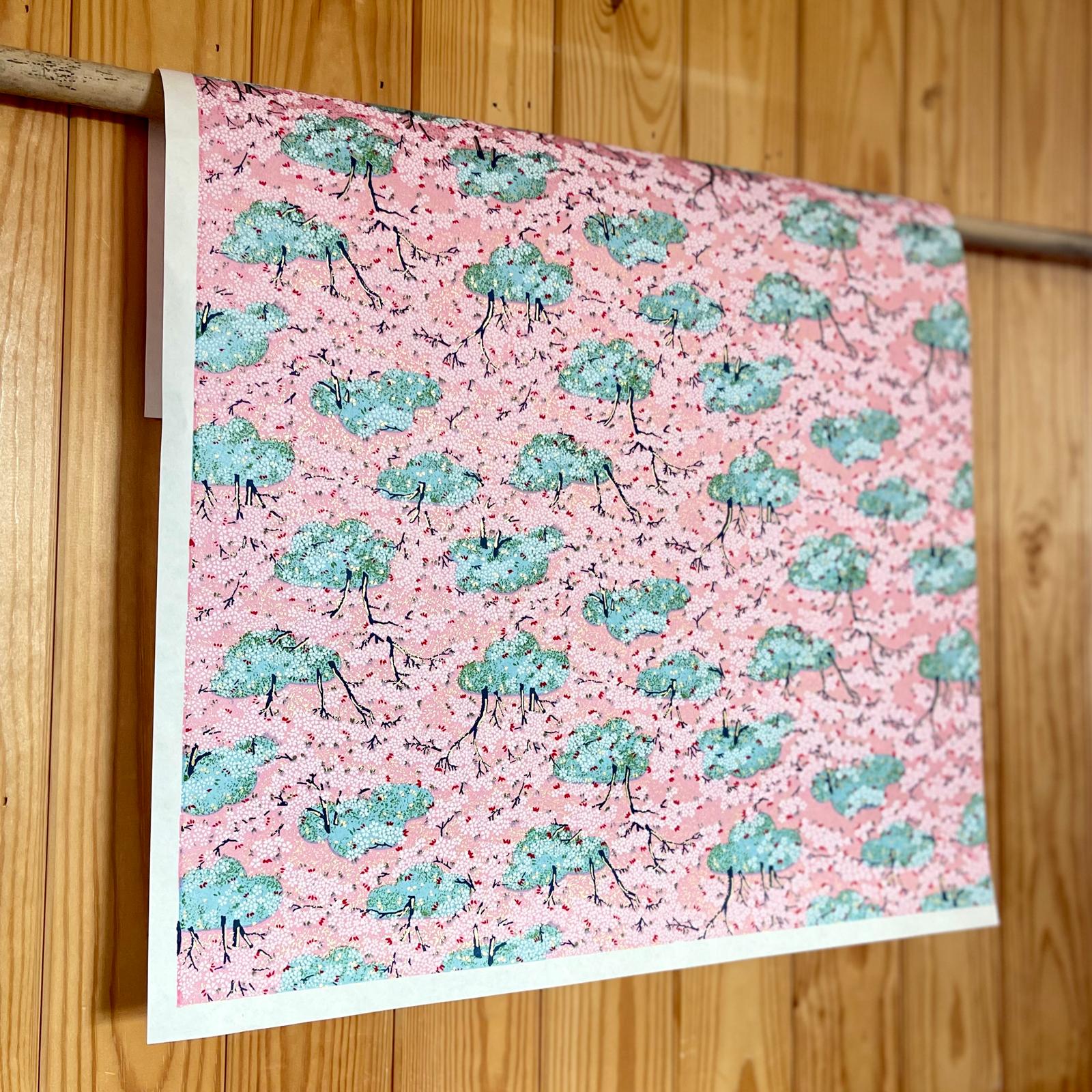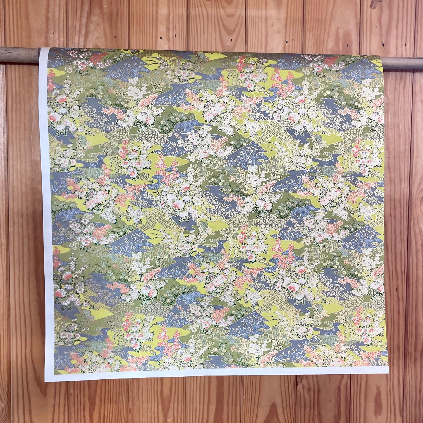 Explore Esmie's collection of silk-screen printed papers carefully selected from an extensive archive of designs in Kyoto, Japan, where we work with family-run studios to produce these exquisite designs in our colour specifications. Many of the designs (also known as Yuzen or Chiyogami) are inspired by textiles dating back to the Edo period (1603-1868), and incorporate symbols of Japanese culture and sensibility, including cranes for long life, blossom for beauty & longevity, bamboo for flexibility. Each colour is applied individually by hand, of which there can be up to 7, all registered with incredible precision, creating an extraordinary depth of colour & pattern, finished with metallic ink creating a beautiful gold lustre. The 88 g/m² base paper is a mixture of kozo and sulphite, despite being light weight, these papers are extremely durable making them suitable for many applications including, bookbinding, origami, box-making, as well as interior projects such as wall covering and furniture lining.