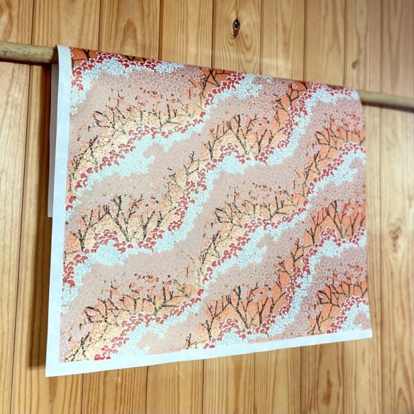 Esmie’s collection of hand-printed Yuzen and Chiyogami papers, crafted in Kyoto, features intricate designs inspired by Edo period textiles. Each design is hand-applied with up to seven colors and finished with metallic ink for a gold lustre. Made from durable 88 g/m² kozo and sulphite paper, it’s perfect for bookbinding, origami, and interior projects.