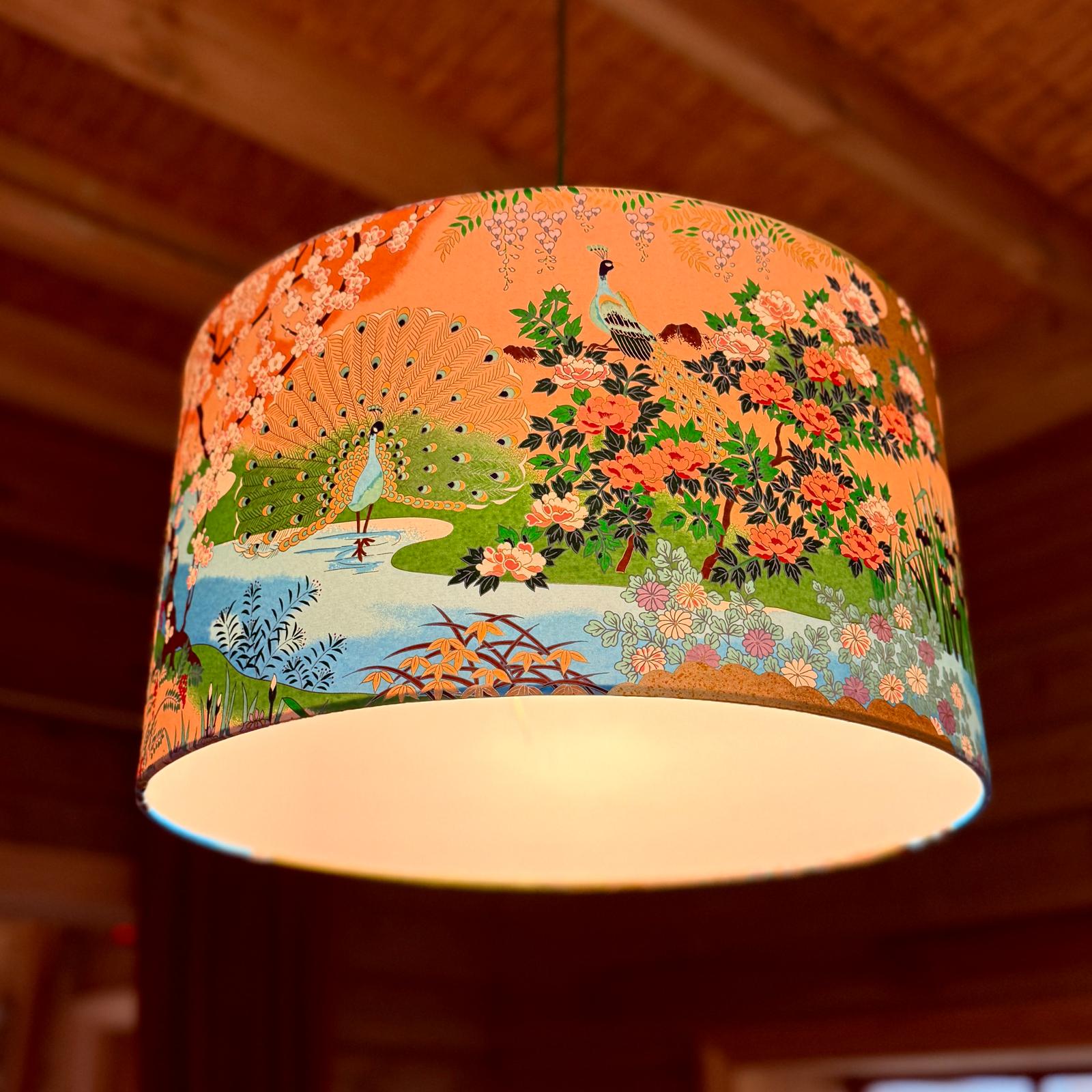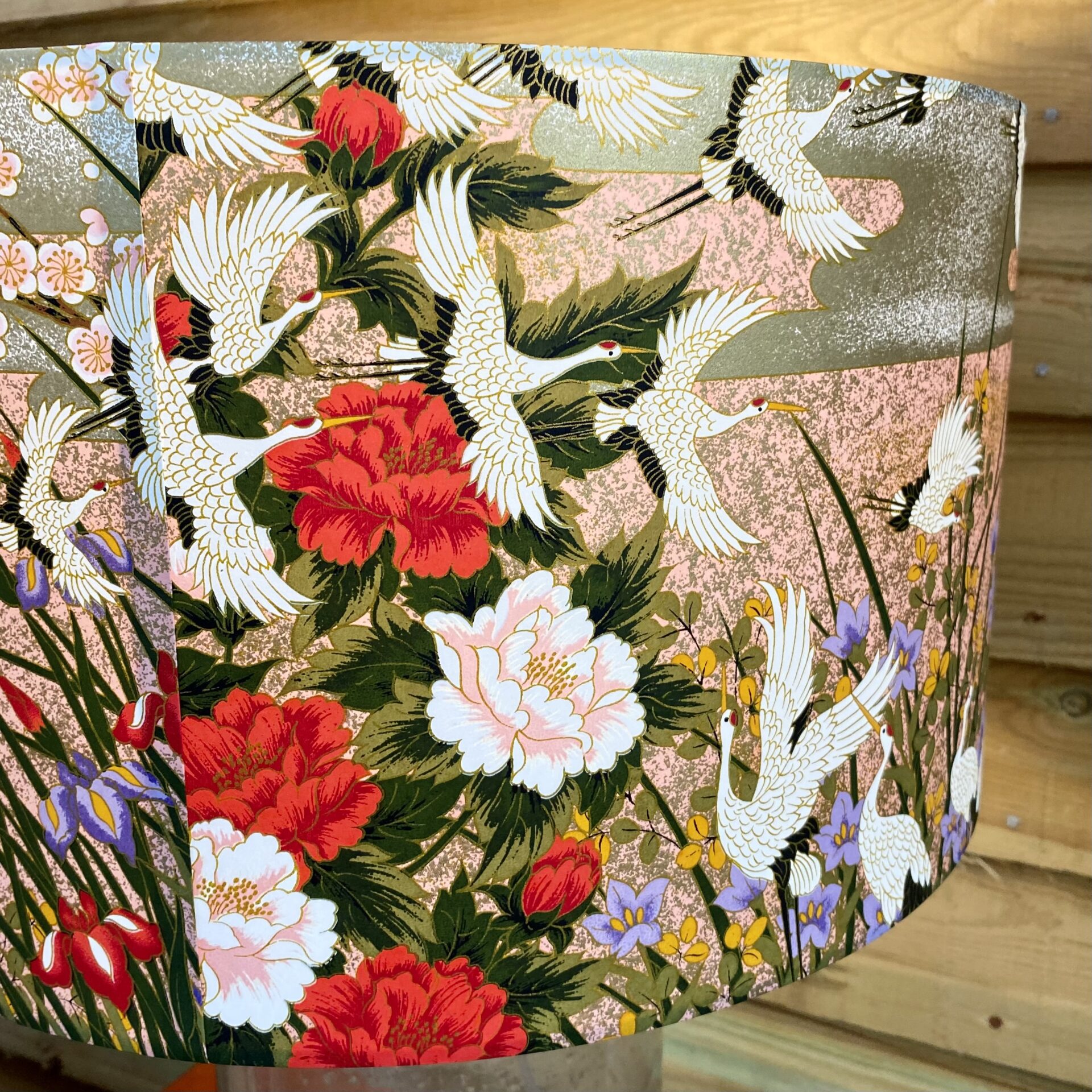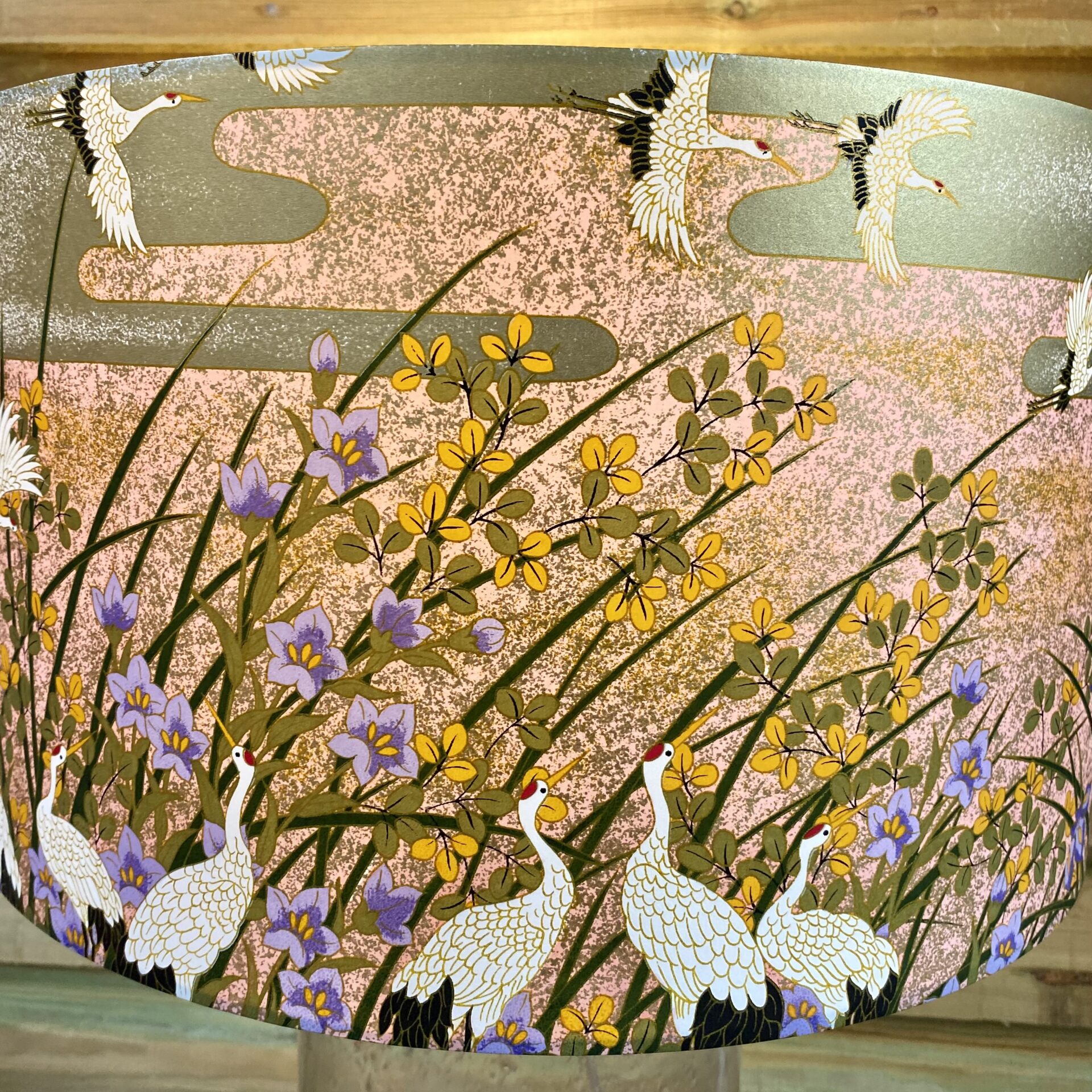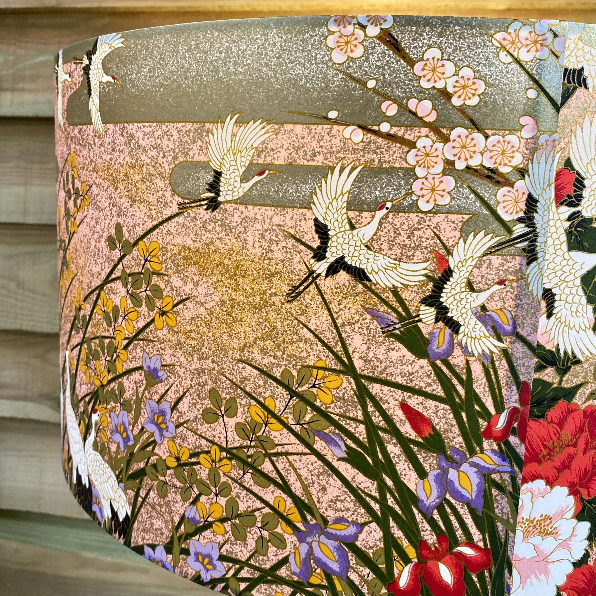 Illuminate your interiors with these exquisite Sougara lampshades from Esmie. Choose from a selection of intricate landscapes, richly decorated with cranes, peacocks and beautiful florals, depicting national symbols of beauty and longevity.  Handcrafted in the South of England using these beautiful silk screen printed designs, selected from an archive in Kyoto, Japan.