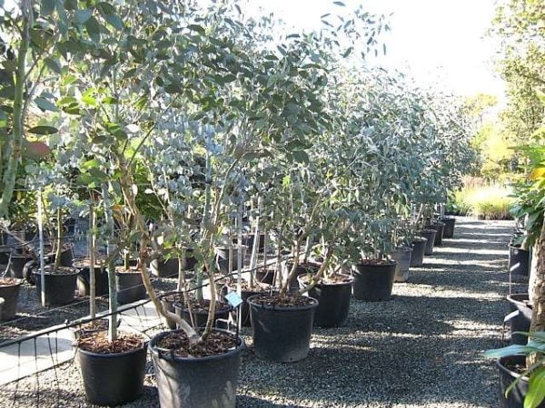 Small by Gum Tree standards. Rarely gets more than 25ft but will reach 15ft in 6 years. We grow them multi-stemmed. More bark for your money. Tough as old boots. Exotic boots. Please contact us for stock availability and sizes.