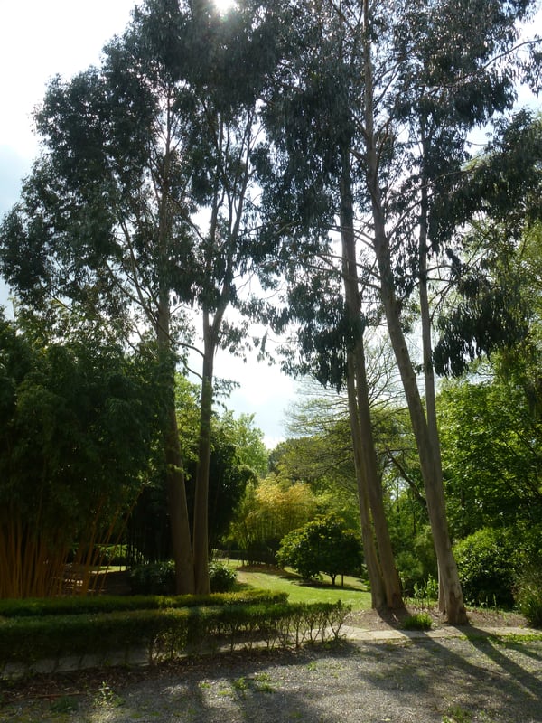 Gum trees (Eucalyptus) march to a different drum. There are dozens of different species from all over Australia and we have distilled this list (there are probably 50 that would grow in Britain) into three. 1. Tall, broad, green and delicate leafed (Eucalyptus aggregata). 2. Tall, straight, narrow and silvery/blue leafed (this one) and 3. Smaller, multistemmed, sparse with beautiful bark and blue foliage (Eucalyptus debeuzevillei). They are famous for the speed of their growth but this is ONLY the case if they have plenty of space and no competition when they're young and getting established. This, the Donald Trump of trees, when young, has enormous trouble competing with a bit of grass. Have you ever noticed how travelling by train is a great chance to see into thousands of back gardens? I once lost count of the number of thin miserable constipated Gum trees in back gardens between Horsham and Victoria. The symptoms are instantly recognisable and are easily cured by removing all other plants within a metre of the trunk. This is true with all plants - but particularly so with Gums. The other non-conformist trait is that you can't grow it from cuttings - only seed. Normally, if we find a particularly fine example of any plant, we'd want to clone it - to produce lots more exactly the same. Occasionally this happens with Gum trees and the desire to clone it will be irresistible. We've tried and tried - even by micropropagation in our laboratory but to no avail. However, these come pretty true from seed and we always try to get seed from Australia that's been gathered on the same trees in a particular area. This helps. They're light sensitive and tend to grow away from other trees so the key is to either grow them on their own or surrounded by an equal amount of other trees in each direction. If possible. Sometimes they grow so fast that staking will not be enough - we've sometimes had to put guy wires up to support them for a few years. They'll stand up on their own eventually. All gums will grow by the sea but you've got to give them time. The salt wind will take the top out and it will eventually be low and wide and dense - just as if you'd been up on a ladder and kept giving it a haircut.