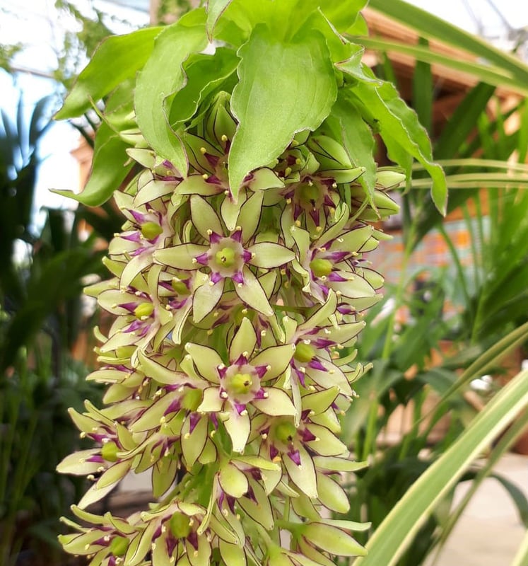 Big green leafy exotic rosette 1.5ft across with a difficult to describe, greeny-white, flower spike. Exotic and slightly pineapple-like. Please contact us for stock availability and sizes.
