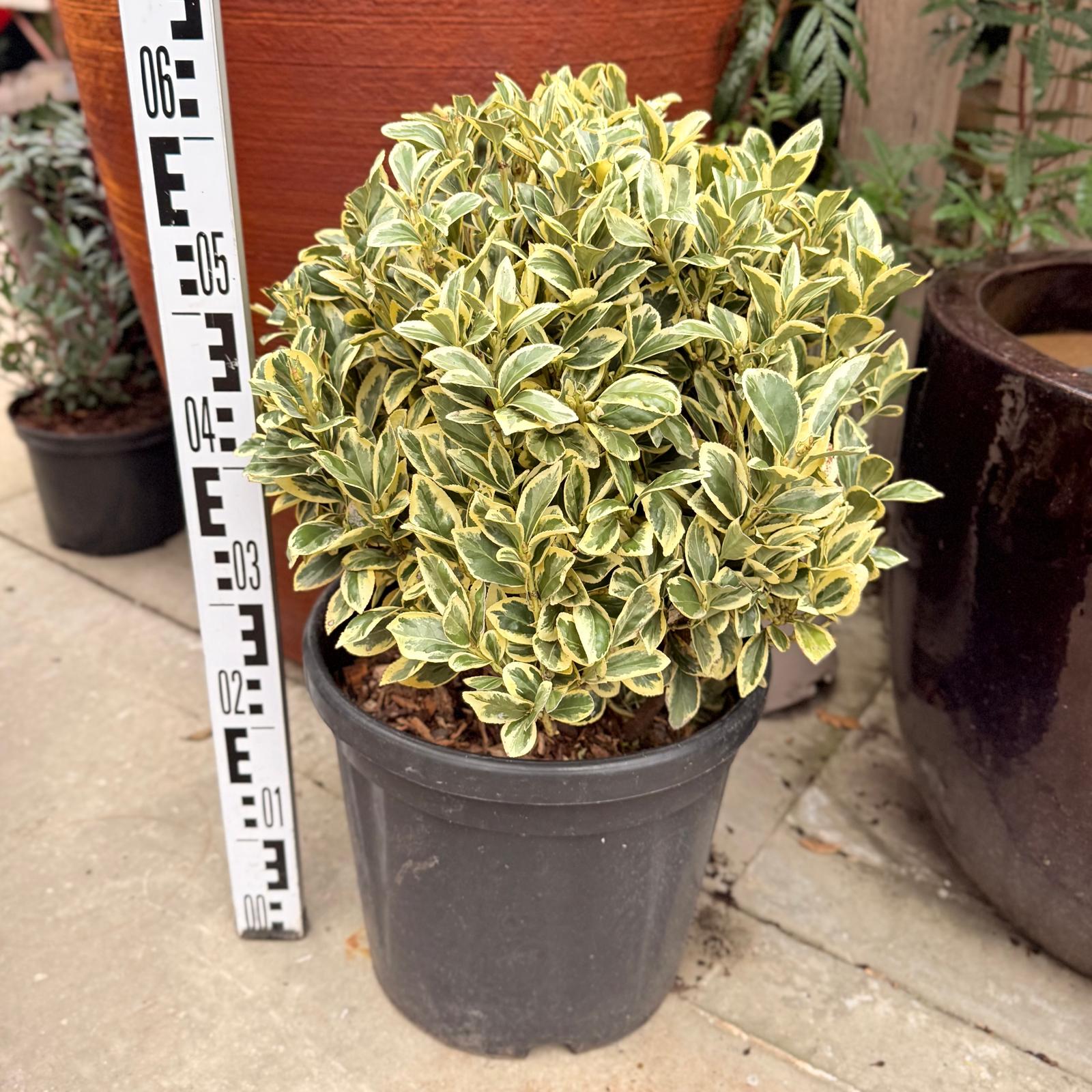 White variegated Euonymus. Salt and wind resistant evergreen for hedging and topiary. Don’t be snooty about it. It has its uses and it’s as tough as old boots. Please contact us for stock availability and sizes.