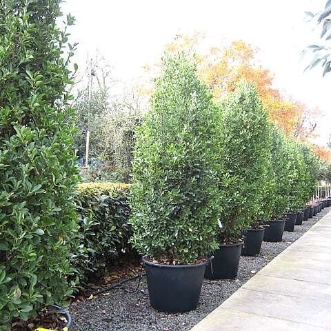 Glossy, robust and reliable. One of the best salt resistant shrubs for hedging and topiary by the sea. The first plant to come into leaf in the spring. 10ft after 15 years. Please contact us for stock availability and sizes.
