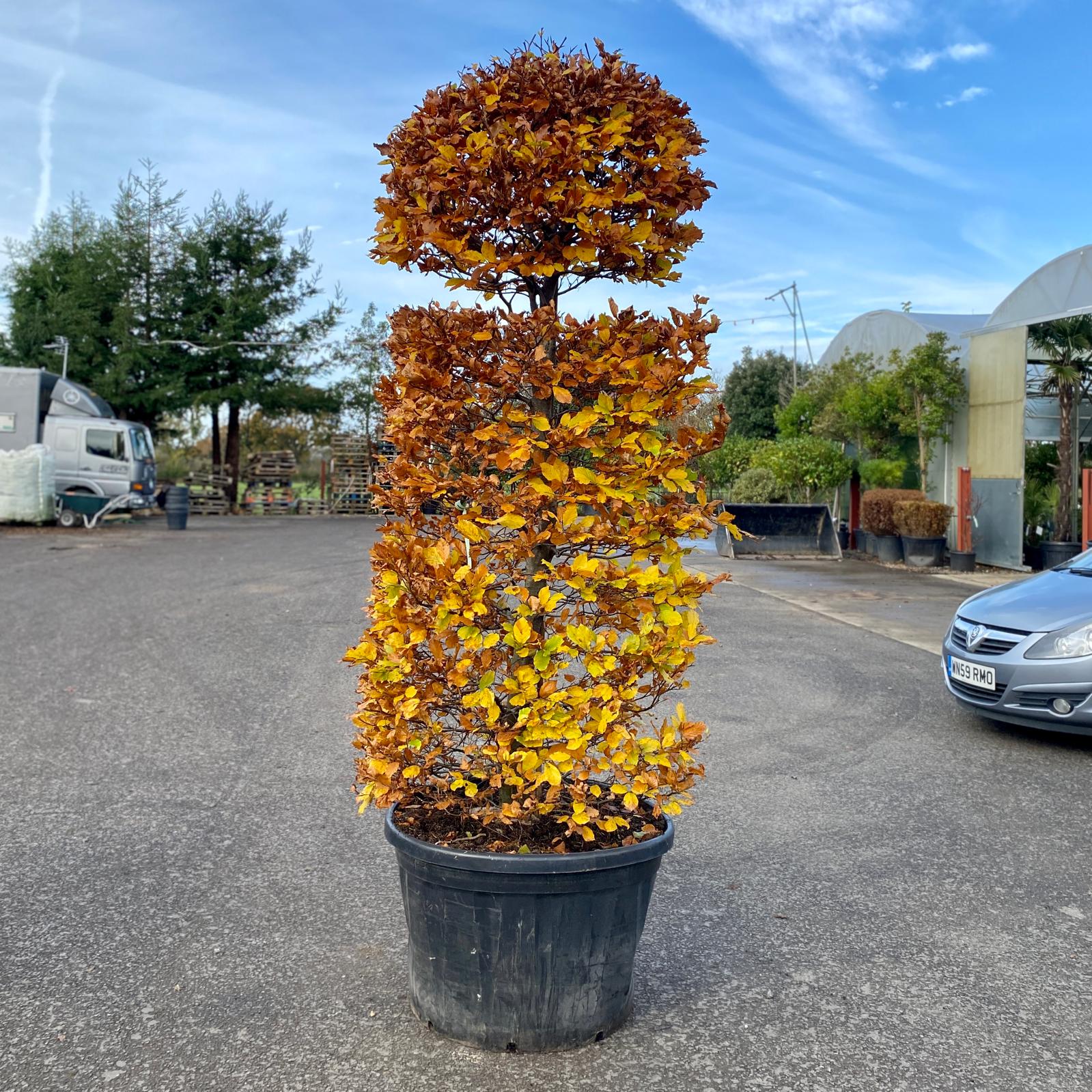 Lovely cones, well-balanced pyramids and floating cubes, it’s all about shape, impact and commanding forms. These Fagus sylvatica have all the qualities you want to add structure and gravity to a garden design, especially for a more formal composition but are equally comfortable in more naturalistic settings. Evergreen and interesting year-round with bright apple-green leaves in the spring that darken in the summer before turning golden and orange in autumn. The leaves can be retained over the winter not falling until the new growth emerges the following spring. Any soil and any aspect, plonk them where you will but avoid heavily soggy spots.