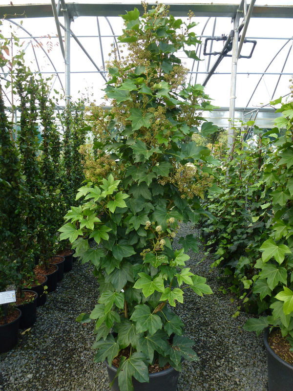 The flowers are a collection of white balls on a spike with a rather pleasant smell. They're familiar - smaller than on a Fatsia and bigger than on an Ivy. Of course.