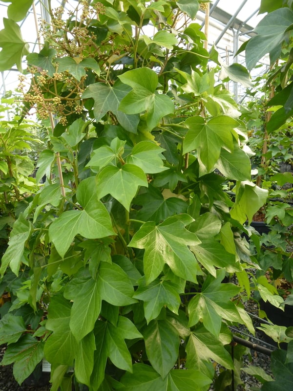 On a botanic note : this is called a bi-generic hybrid. This is an uncommon arrangement - a cross between two genera - Ivy (Hedera helix) and Fatsia. They're related but not as closely related as is usual with hybrids. Usually they're a cross between different species but they're the same genus. If one of your parents is a climber (Ivy) and the other's a shrub, how does it feel? Like a rolling stone?