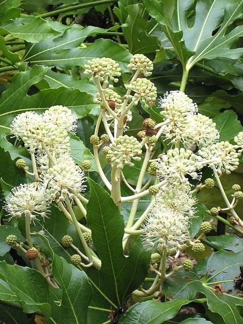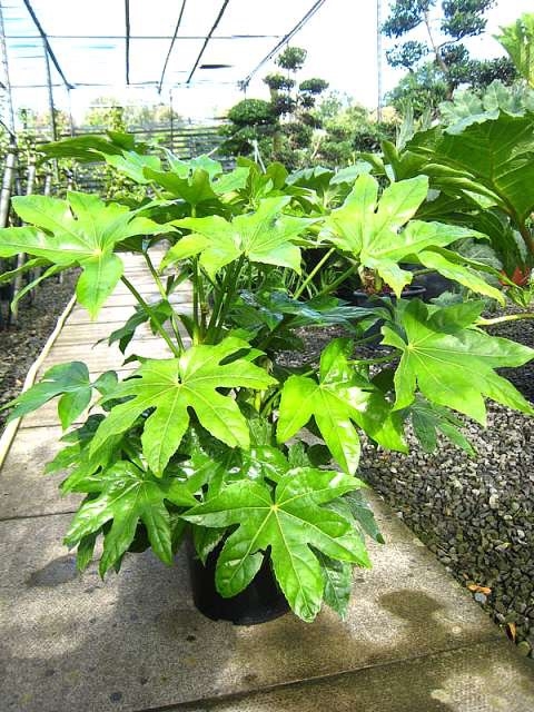 Well known evergreen exotic. Likes shade. Much versatility and opportunities for Creative Maintenance. To 15ft after 15 years. Impressive when pruned into a single trunked tree – looks a bit like a Papaya.