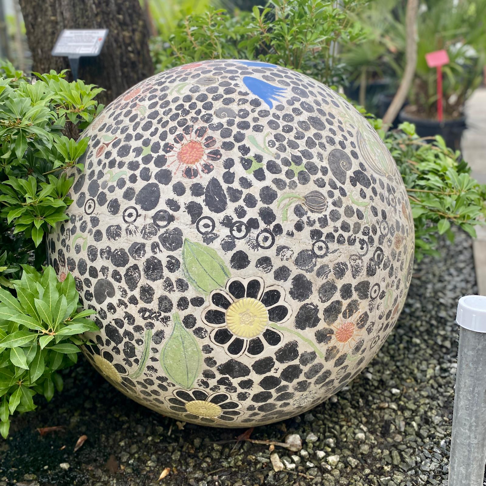 Marion has drawn inspiration from her own garden for this personal piece created in response to the glorious spring which coincided with the limitations of social distancing in 2020. The mosaic design was created by building up layers with coloured Jesmonite.