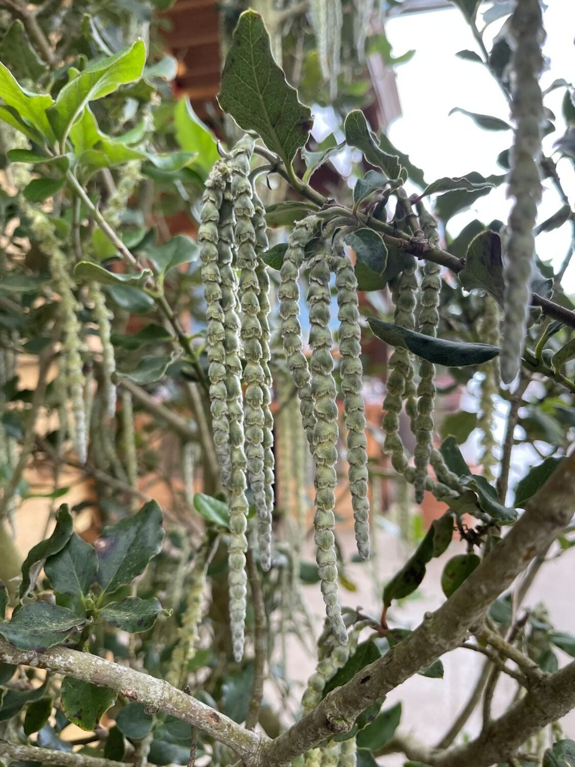 Yes, the tassels: what’s really nice about Garrya are the skeins of catkins which festoon the whole shrub in grey green brocade from December and well into the new year. Beloved by florists but we like to leave them on.
