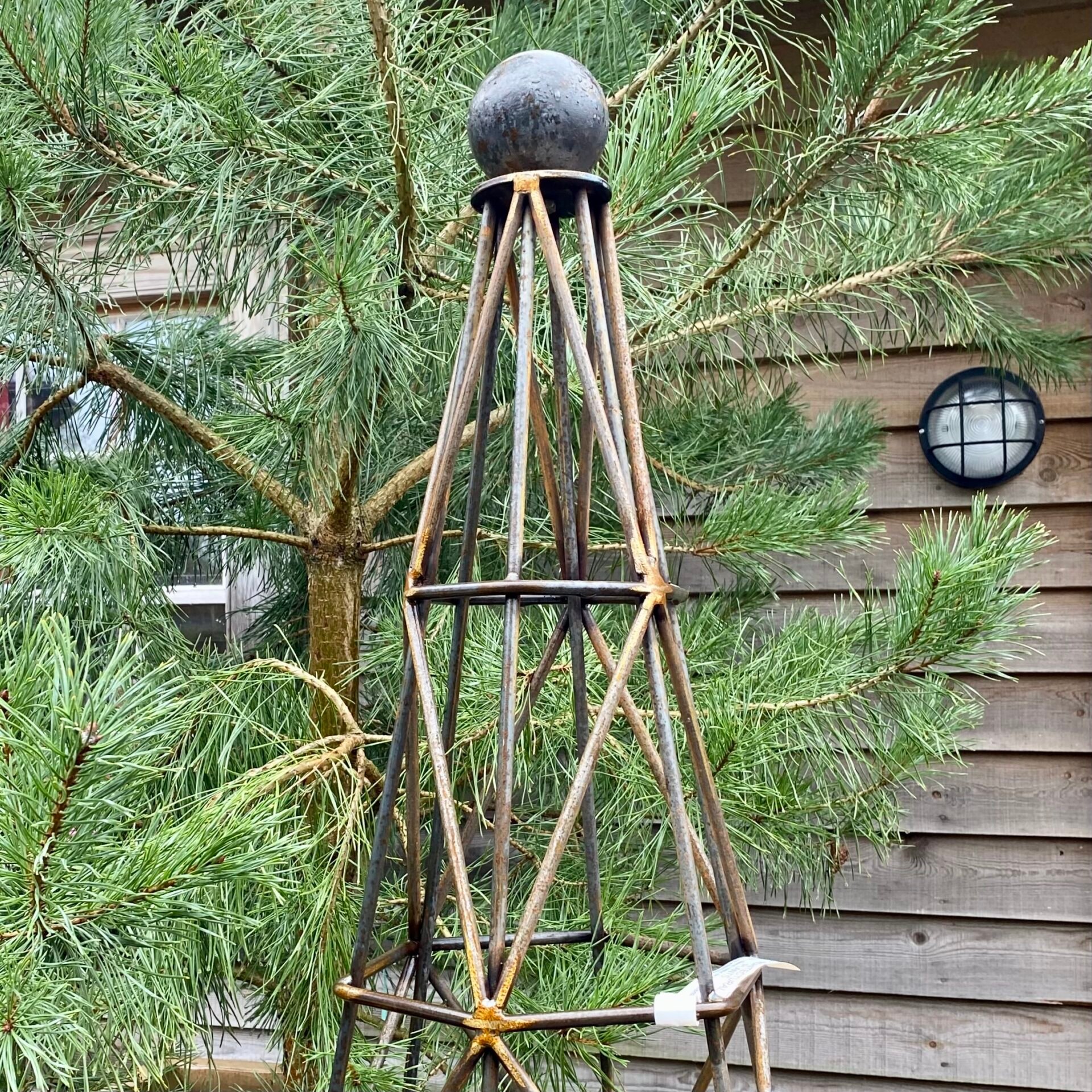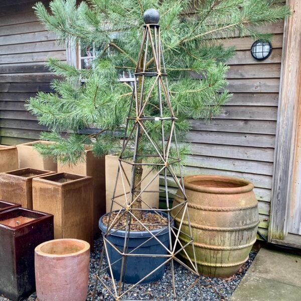 Each of these supports has been crafted with a keen geometric eye to provide a stylish metal frame work that is also very practical. Very good for securing and training climbers to weave through it and sturdy to withstand weighty plant growth. Topped with a smooth finished steel ball, it’s a beautiful thing even in the winter months when much around it might be looking a bit drab.