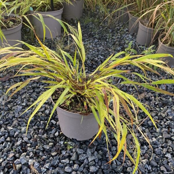 Likes heavy soil and a bit of shade. Plant it under your trees. The name gives away its preferred position - Forest Grass. Best in shade. It's elegant, well behaved and hardy and an unusual ground cover to grow under trees and raised shrubs.