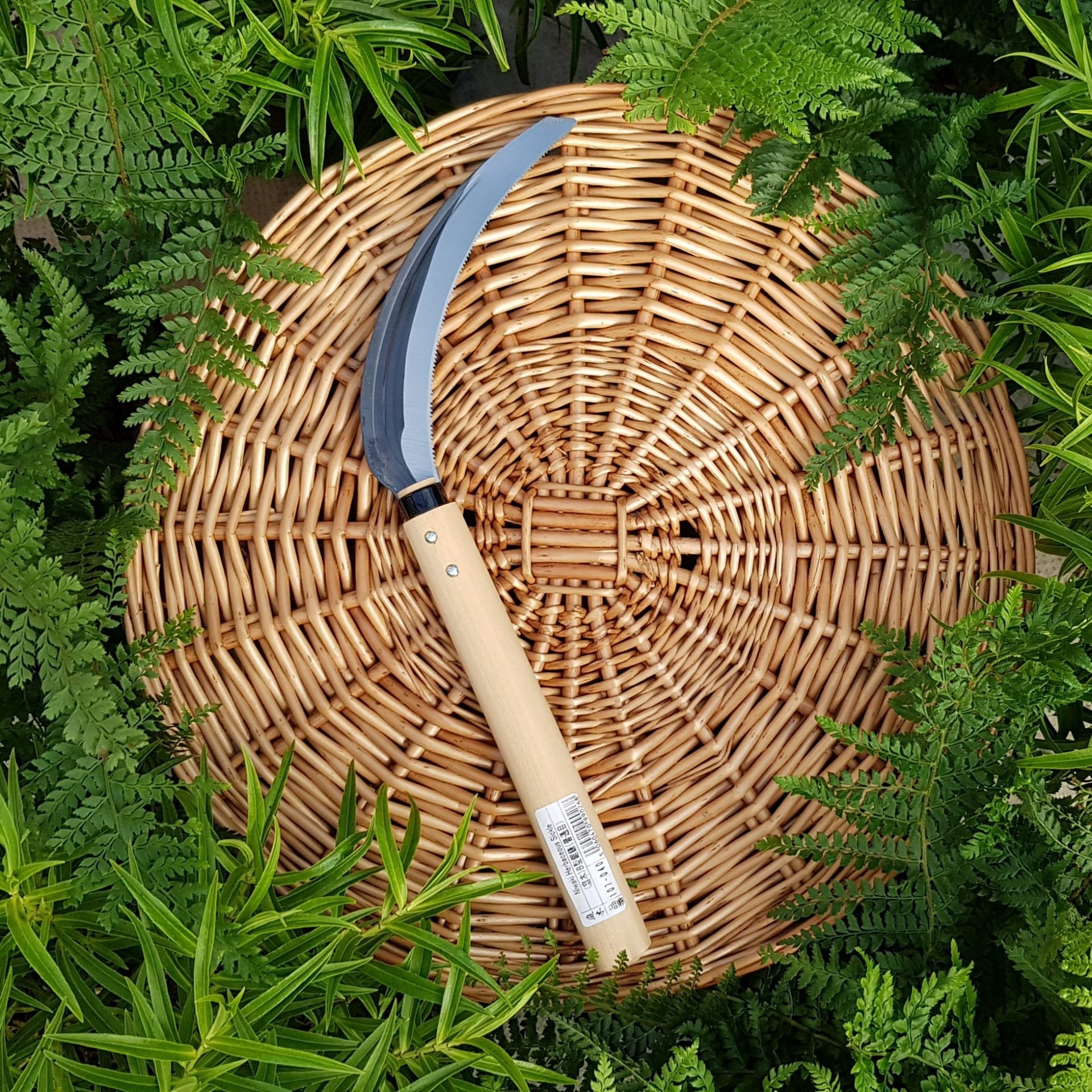 What they use in Japan for hand-harvesting rice, but some bright spark realised that the same thing works just as well (ie. brilliantly) on herbaceous stuff and grasses over here. Serrated blade copes with tough, dry stalks: grab a handful, cut with a single, strong sawing action.