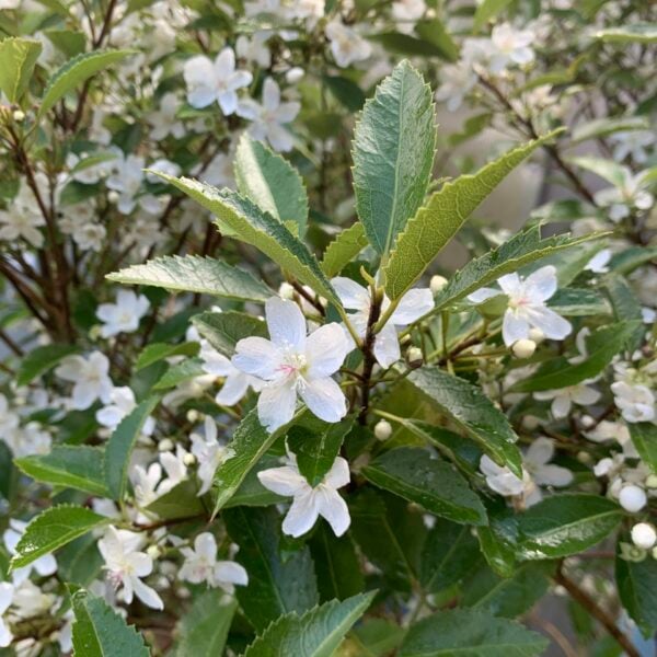 Elegant little evergreen weeping tree (to 25ft) from New Zealand covered in star shaped white flowers in late summer. Please contact us for stock availability and sizes.