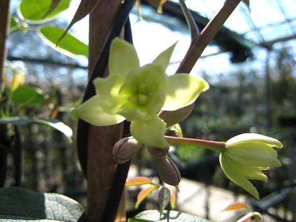 Dense, leafy, vigorous and evergreen. The only other climber we do with those attributes is Clematis armandii but clematis are always thin at the bottom (all they want to do is reach the top of the nearest tree). This isn't. It'll form dense foliage all over whatever it's growing up or over. The smell of the small creamy pendulous flowers in April is nothing short of delicious. We used to do a hardier species - Holboelia coriacea - that looked similar but the flowers were less delicious in the smell department. It was a good looking plant (similar) but much hardier and we thought that would make people in colder gardens buy them. We were wrong. Holboelia will cover a house given half a chance but responds well to a good haircut and is easy to control. It will get slightly defoliated (leaves drop off) in cold winters but it always recovers. Avoid chalky soil but otherwise unfussy. Will grow in shade but probably prefers sun.