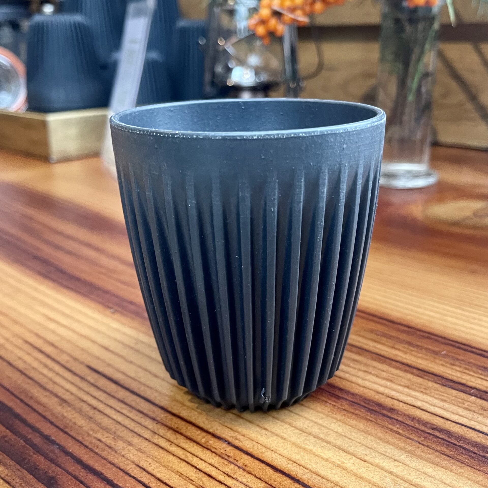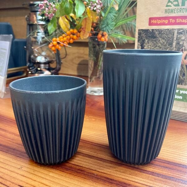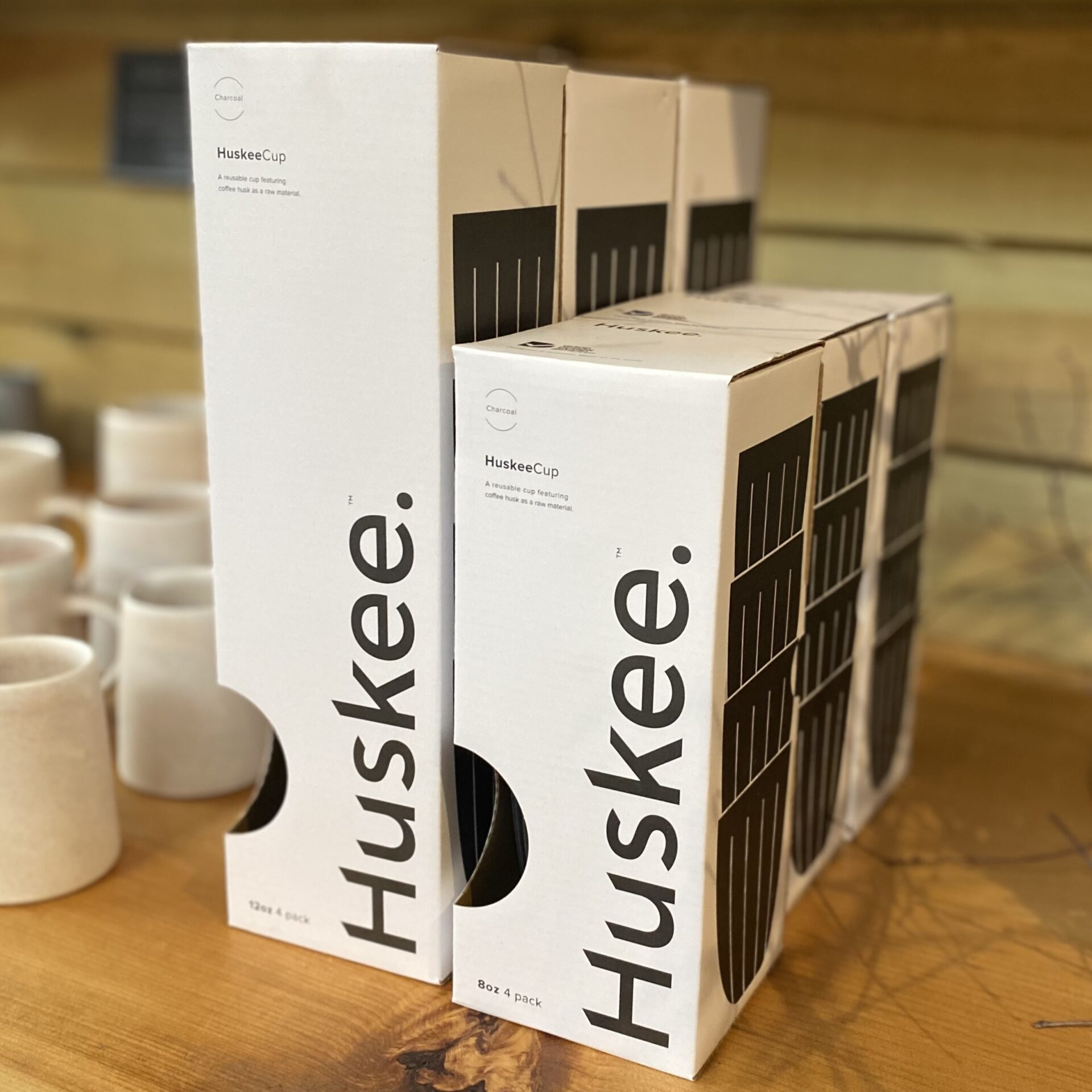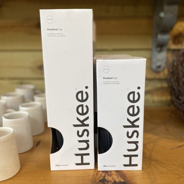 Huskee cups. Recycled from the discarded husk from coffee farms and transformed into these smart pieces of design. Ergonomic, textural, retain the heat well, cool to the touch and made from a highly resilient material. This four-pack is available in two sizes: 80z & 12z cups.