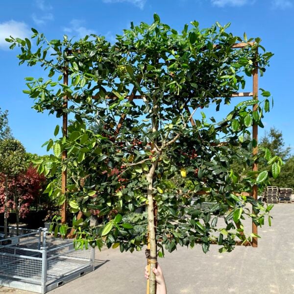 This form of Holly is just as tough but slightly less prickly of leaf compared with our better known native. Please contact us for stock availability and sizes.