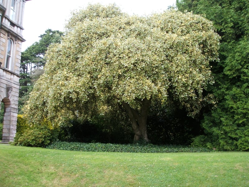 The variegated form of our native English Holly. The variegation is usually tending towards white rather than yellow. Below is cut and pasted, the entry for Ilex aquifolium :