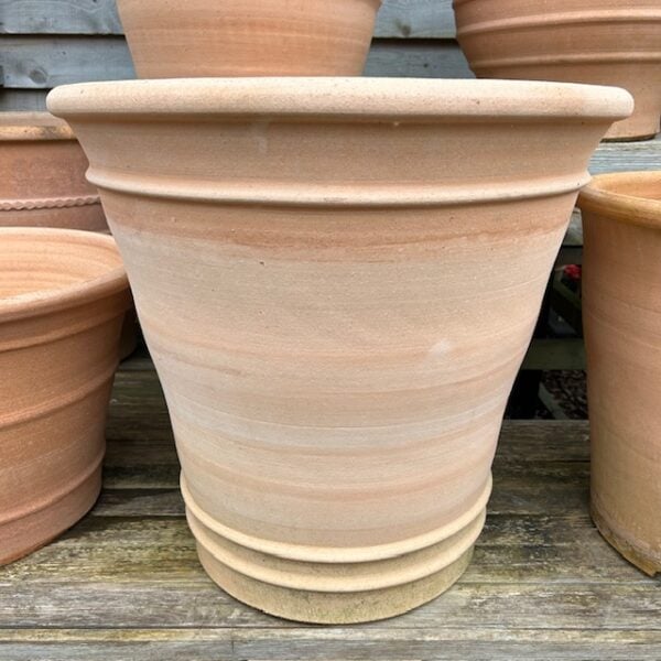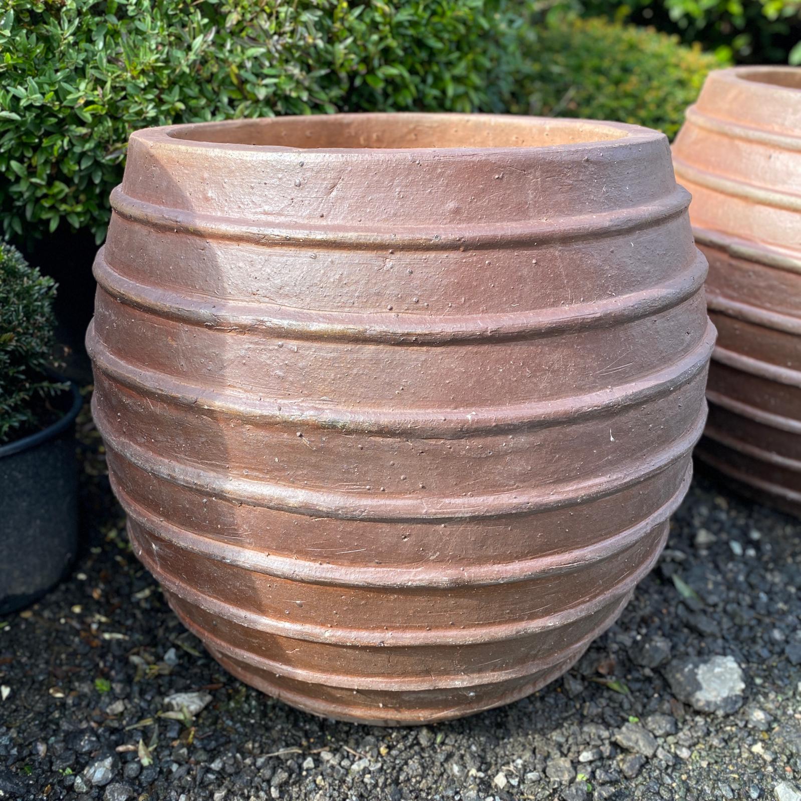 The Irun Ironstone Jar is a high-quality, handcrafted planter with a bold 8-ringed design.