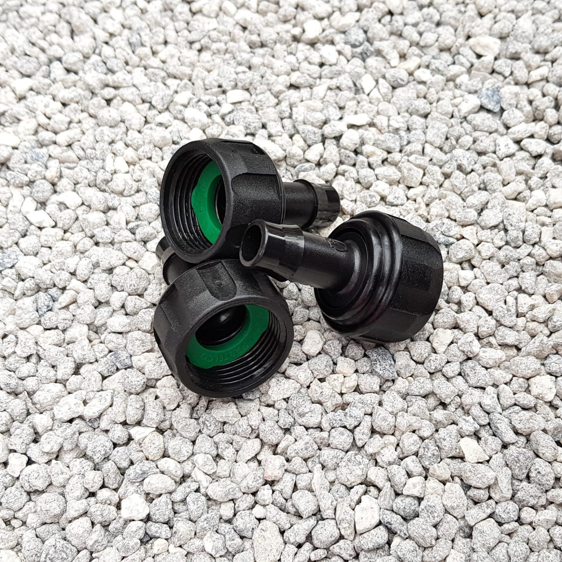 Use the nut and tail tap adaptor to connect supply pipes to garden taps and automatic water timers. The nut and tail tap adaptors have a rotating nut with a sealing washer inside. These are a preferred connection to garden taps for irrigation supply pipe as they are less likely to disconnect or leak. Fitting is simply a case of screwing it on to threaded outlets and pushing the pipe on to the tail of the fitting.