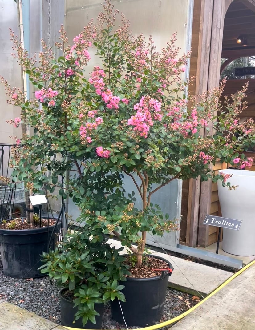 Is it a tree or is it a giant shrub. Is it Crape or is it Crepe? Yes it’s one of those. Whatever it is, it’s lovely but if you don’t live in the South of England read no further. Please contact us for stock availability and sizes.