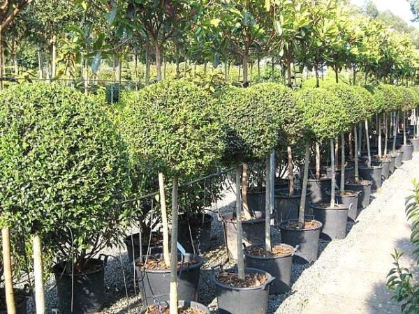 Lollipops. Tiny leafed evergreen that we sell as half standards. Tough and easy but must be clipped regularly to keep them looking good. Please contact us for stock availability and sizes.