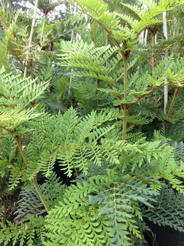 A beautiful member of the exotic Protea family. Large, evergreen, ferny leaves. Essential if you have poor acid soil and a fairly open site. 10ft after 8 years. Please contact us for stock availability and sizes.