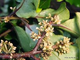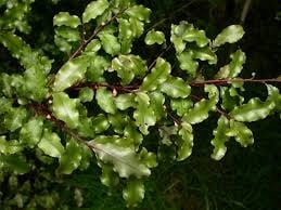 The Maoris developed an infusion of the leaves to cure many aches, pains and conditions - from toothache to a general tonic. Before the great New Zealand clearances carried out by both Maori and European settlers it was common throughout the country but is now restricted to forest reservations of native species. Its crinkly leaves can confuse it with Pittosporum tenuifolium but the leaves are fleshier and with a distinctive red tinge after midsummer. It's sometimes used as a hedge in New Zealand but in Britain it's exceedingly rare and largely untried outside of London where it's known to grow in the gardens of keen Kiwi horticulturalists who've settled in the city.