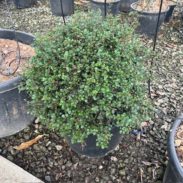 They like water. Given ideal conditions (plenty of water), they could grow to 15ft in 10 to 15 years. They have the most amazing root systems that seek out water with incredible enthusiasm and grow vigorously. Will tolerate very low temperatures but struggle with cold northerlies when their roots are frozen. So, avoid planting this tree if very exposed to cold winds. Although not suitable for seaside planting, it will tolerate a bit of marine exposure. Plant high, exposing as much of the taper at the base of the trunk as possible. Keep very well-watered when first planted. A favourite for training as a cloud pruned ‘Niwaki’. It’s better in a protected, urban, courtyard sort of garden to be admired from close quarters. As with all topiary, the more often you clip the plant, the thicker the foliage and the higher the definition. With Myrtus apiculata this also means a higher density of lovely white flowers on each cloud pad.