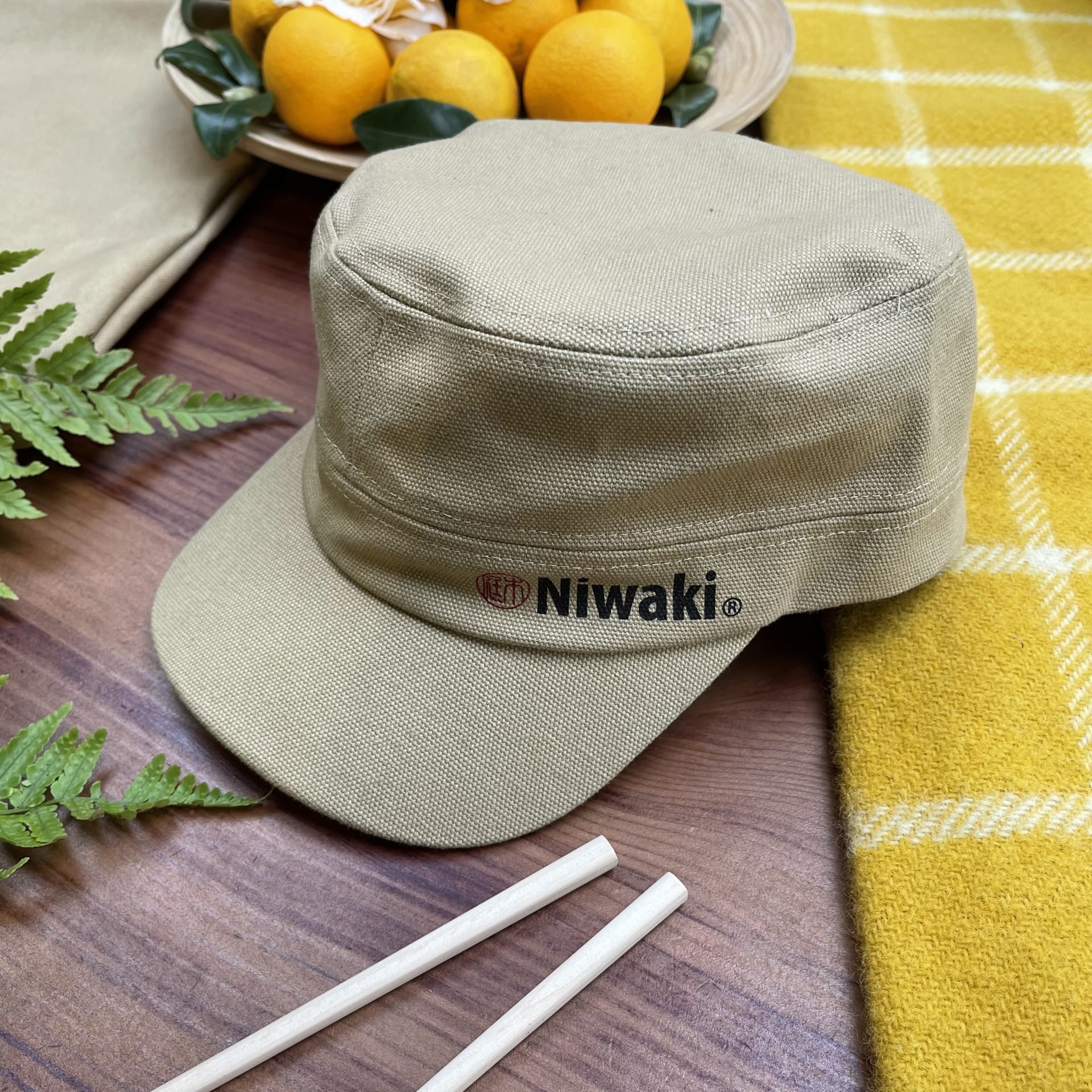 Rugged, unlined 16oz canvas, with a cheeky dash of Niwaki red on the inside. Clamp buckle on the back adjusts from small right up to enormous - it seems to fit everyone, and if it doesn’t, send it back.