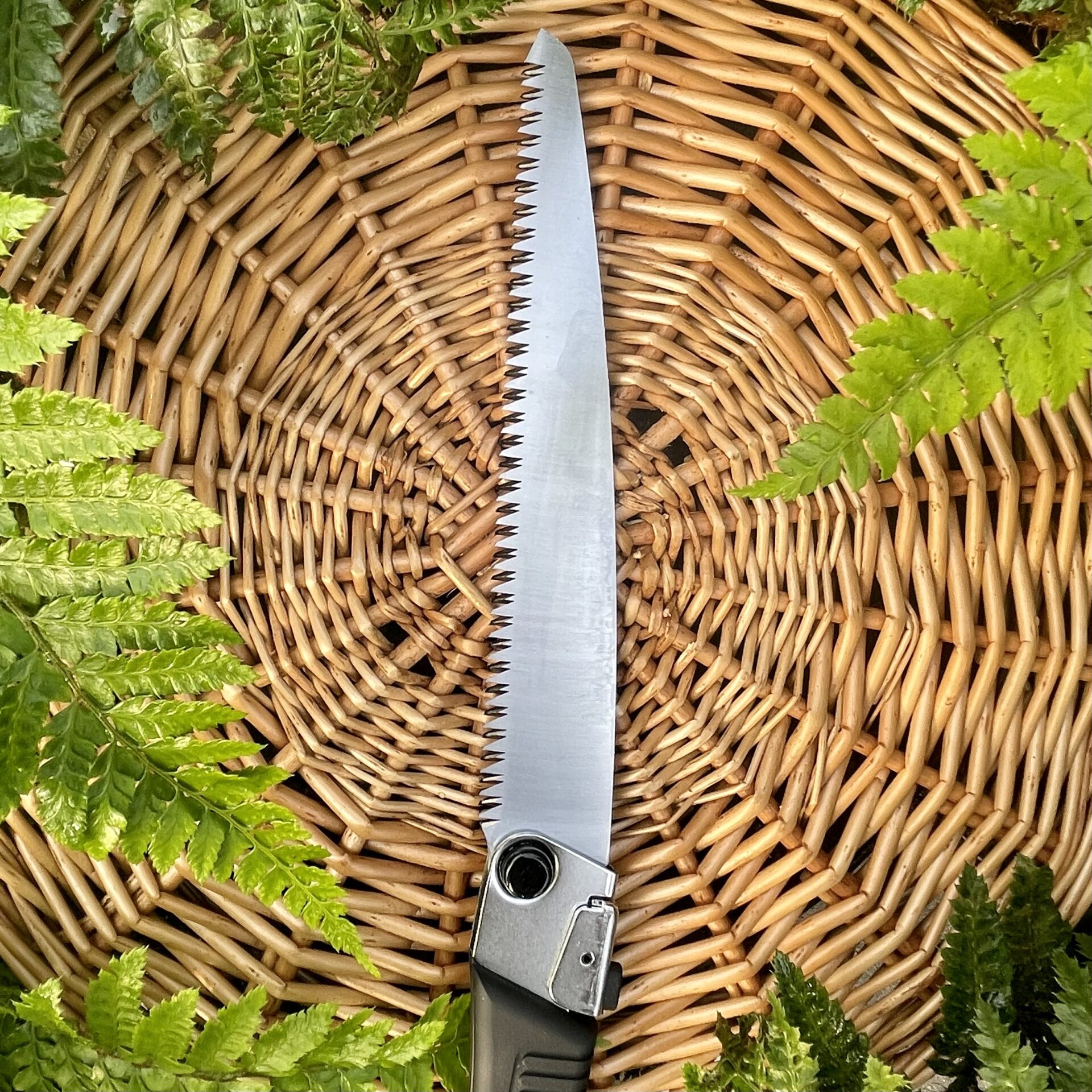 The perfect pruning saw for regular use in the garden – for thinning shrubs, pruning fruit trees and other meatier jobs that secateurs or loppers can’t handle. With a chunky, sturdy rubber handle and 21cm blade that easily cuts branches up to around 7cm diameter, this is the ideal size to carry with you at all times – it fits very nicely in the Double Holster with a pair of Secateurs, or on its own in the Saw Holster.