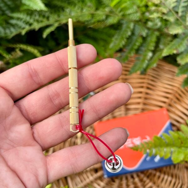This little brass Naoshi is for straightening and cleaning your Kenzan. It’s a double ender - unscrew the straightener spike and swap over for the cleaner. Comes with a very Japanese bell.